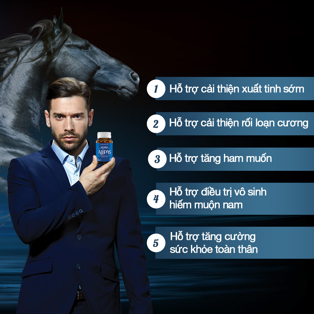 Alipas mới có tác dụng hỗ trợ tăng cường Testosterone và Nitric Oxide nội sinh, giúp quý ông giải quyết tận gốc các vấn đề gặp phải trong đời sống tình dục, lấy lại sự tự tin và bản lĩnh.