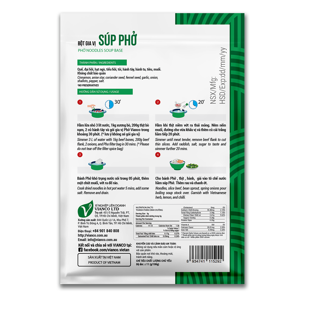 Bột gia vị Súp Phở Vianco - Kết tinh hương vị thiên nhiên