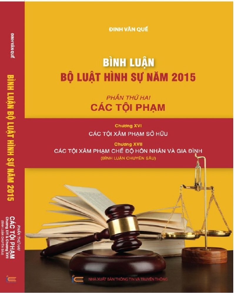 Bộ luật Hình sự (BLHS) đã được Quốc hội khóa XIII, kỳ họp thứ 10 thông qua ngày 27 tháng 11 năm 2015 và được sửa đổi, bổ sung tại kỳ họp thứ 3 Quốc hội khóa XIV ngày 20 tháng 6 năm 2017, có hiệu lực thi hành từ ngày 01 tháng 01 năm 2018 (sau đây gọi tắt là BLHS năm 2015). Đây là BLHS thay thế BLHS năm 1999. BLHS năm 2015 không chỉ thể hiện một cách toàn diện chính sách hình sự của Nhà nước ta trong giai đoạn hiện nay, mà còn là công cụ sắc bén trong đấu tranh phòng, chống tội phạm; là một đạo luật thể chế hóa Hiến pháp năm 2013, đáp ứng yêu cầu cải cách tư pháp, bảo đảm hiệu lực quản lý của Nhà nước, góp phần tiếp tục thực hiện công cuộc đổi mới, đẩy mạnh công nghiệp hóa, hiện đại hóa đất nước. So với BLHS năm 1999, BLHS năm 2015 có nhiều quy định mới về tội phạm và hình phạt. Việc hiểu và áp dụng các quy định của BLHS trong việc đấu tranh và phòng ngừa tội phạm là rất quan trọng. Vì vậy, công tác phổ biến, tuyên truyền BLHS để mọi người, nhất là đối với các cơ quan tiến hành tố tụng và người tiến hành tố tụng nắm được nội dung cơ bản của Bộ luật, trong đó có những nội dung mới được sửa đổi bổ sung, nhằm áp dụng thống nhất là vấn đề cấp thiết. Nhà xuất bản Thông tin và Truyền thông phối hợp với Thạc sỹ Đinh Văn Quế, nguyên Thành viên Hội đồng Thẩm phán, Chánh tòa Hình sự - Tòa án nhân dân tối cao, người đã cho công bố gần 50 tác phẩm về hình sự và tố tụng hình sự, trong đó có bộ sách bình luận khoa học về BLHS năm 1999, đã được các cán bộ trong các cơ quan tiến hành tố tụng, các luật sư, các giảng viên và sinh viên trong các trường đại học luật và cán bộ làm công tác pháp luật tham khảo. Ra mắt bộ sách: BÌNH LUẬN BỘ LUẬT HÌNH SỰ NĂM 2015 (SỬA ĐỔI, BỔ SUNG 2017) @ Phần thứ nhất: Những quy định chung @ Phần thứ Hai - CÁC TỘI PHẠM GỒM CÁC CHƯƠNG: