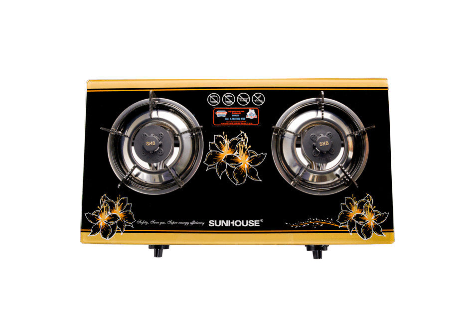 Combo Bếp Gas Dương Kính Sunhouse SHB3226 Kèm Van Dây - Chính Hãng có 2 lò đun, điều khiển lửa to nhỏ bằng núm vặn tiện lợi, chế biến được nhiều món ăn cùng lúc. Mặt kính với gam màu đen vàng, tô điểm họa tiết trang trí vừa mang lại tính thẩm mỹ cao vừa có khả năng chịu lực, chịu nhiệt, đồng thời dễ dàng vệ sinh sau khi sử dụng.
