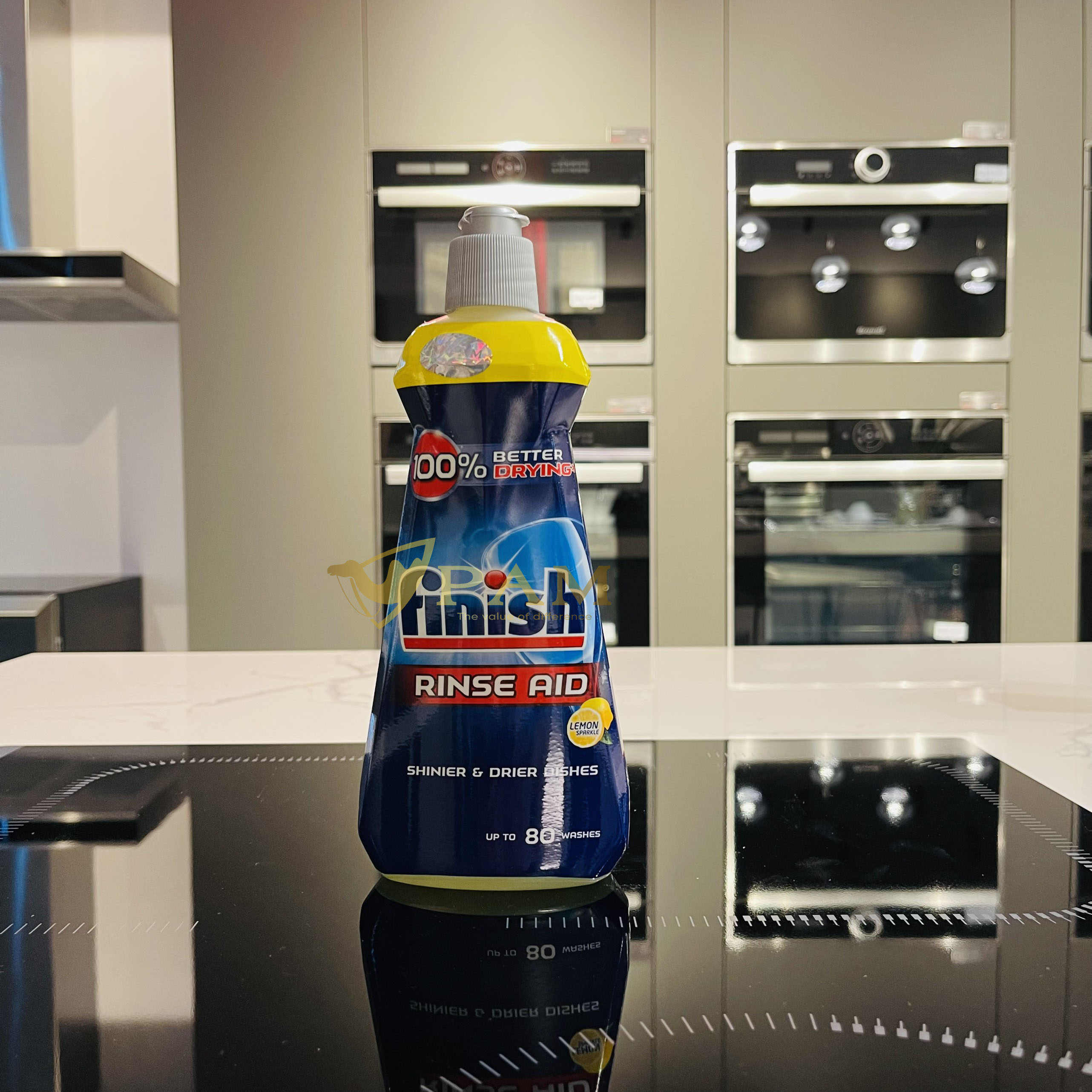Không những thế chúng còn làm cho những dụng cụ nhà bếp không bị mờ khi rửa nhiều trong máy mà chúng sẽ trở nên sáng bóng và sạch sẽ hơn. Đặc biệt nước làm bóng và khô chén, đĩa Finish Dishwasher Shine & Dry Regular sẽ hỗ trợ cho quá trình sấy khô được nhanh hơn, sáng bóng hơn, chén đĩa sẽ được sấy khô hoàn toàn và lưu lại hương thơm tươi mát dài lâu.