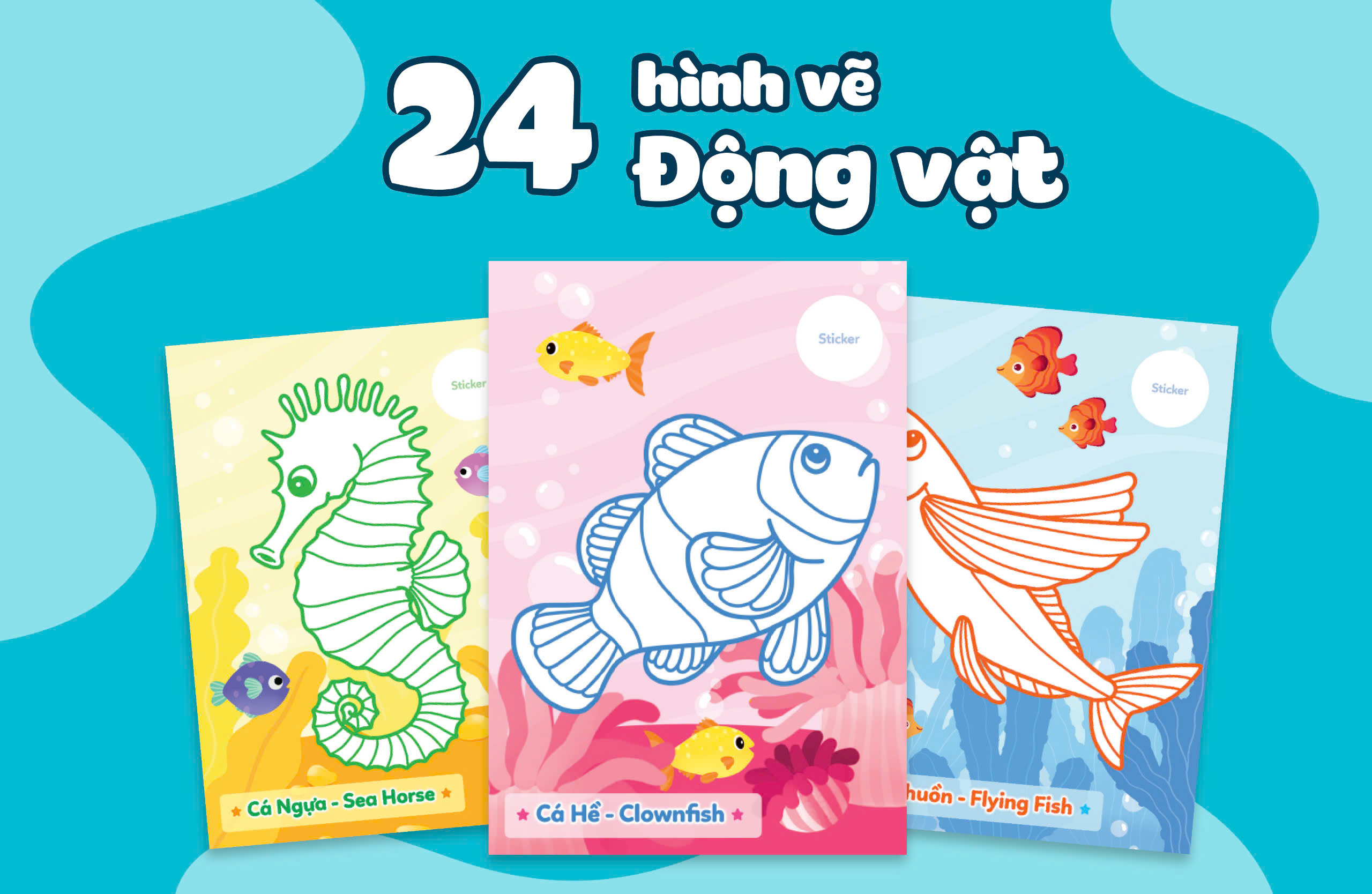 Bộ sách "Tô màu khám phá" gồm 5 cuốn: "Hồ nước trong xanh," "Nông trại vui vẻ," "Thành phố nhộn nhịp," "Thủy cung bí ẩn," và "Vườn thú ngộ nghĩnh. Sách phù hợp với trẻ lứa tuổi từ 3 đến 6 tuổi. Với những cuốn sách này các bé không chỉ thỏa sức tô màu mà còn giúp các em học hỏi và khám phá thế giới muôn màu sắc. Được thiết kế với màu sắc sinh động, sách kích thích sự sáng tạo của trẻ, đồng thời đi kèm với sticker động vật, giúp các em hình dung rõ nét về các loài vật. Hơn nữa, sách còn cung cấp tên gọi bằng tiếng Việt và tiếng Anh cho từng con vật theo chủ đề, giúp trẻ mở rộng hiểu biết về thế giới và học thêm một ngôn ngữ mới - tiếng Anh.