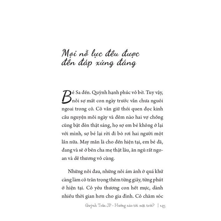 Gấp lại “Chưa kịp lớn đã phải trưởng thành” và "Quỳnh Trần JP - Hướng nào đến mặt trời?”, mong bạn trở thành phiên bản hoàn hảo nhất để kịp trải nghiệm và tận hưởng khoảnh khắc của tuổi trẻ. Mong bạn bản lĩnh bước đi, có được tương lai mà mình mong muốn, càng mong bạn có được cuộc đời bình thản an nhiên.