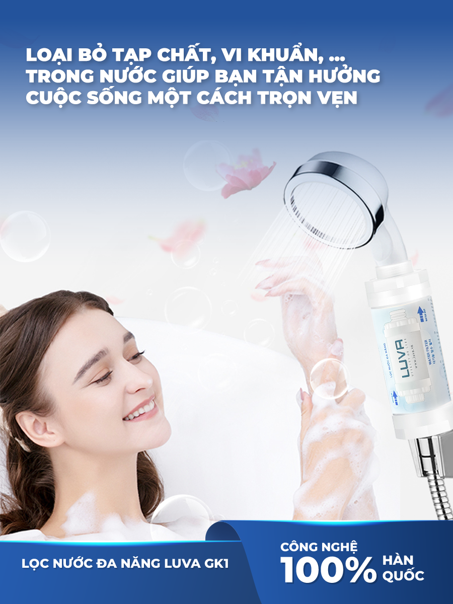 Combo vòi sen LUVA kèm lọc nước đa năng LUVA GK1 Có 2 phân loại là: - Vòi sen LUVA VS4 kèm lọc nước đa năng LUVA GK1 - Vòi sen LUVA VS6 kèm lọc
