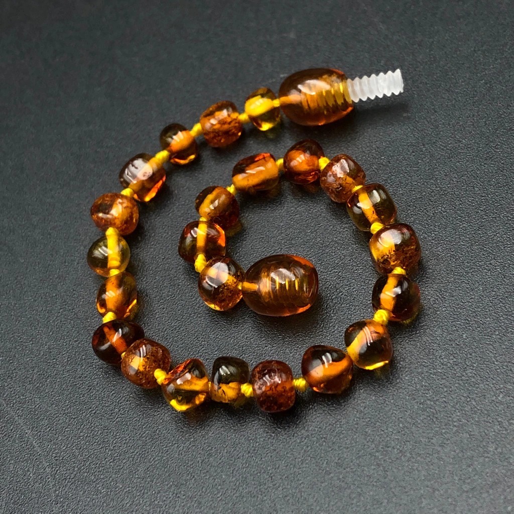 Vòng tay, chân hổ phách cho bé tức là người ta đục lỗ trên những viên đá hổ phách. Sau đó kết nối thành chuỗi rồi đeo lên cổ bé. Dây chuyền hổ phách cho bé hiện nay được rất nhiều bậc cha mẹ ưa chuộng. Sử dụng bởi những giá trị thực tế về tinh thần lẫn sức khỏe đối với bé.