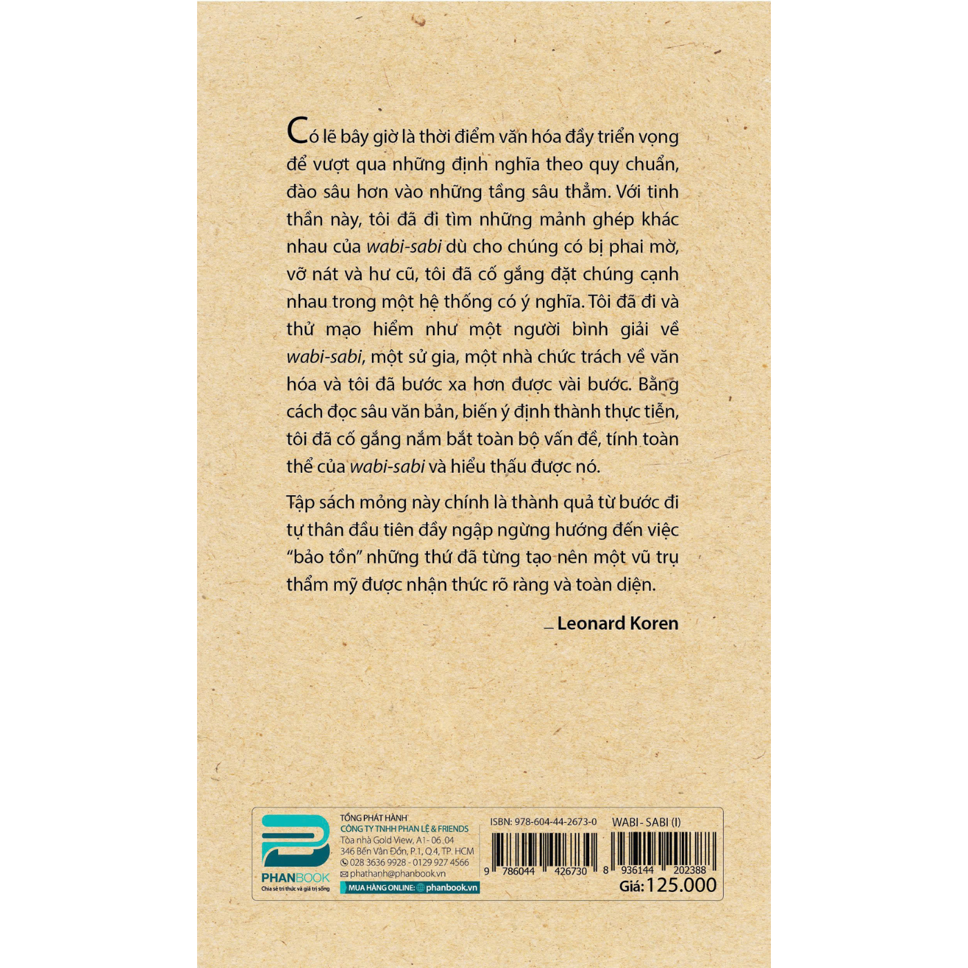 Có lẽ bây giờ là thời điểm văn hóa đầy triển vọng để vượt qua những định nghĩa theo quy chuẩn, đào sâu hơn vào những tầng sâu thẳm. Với tinh thần này, tôi đã đi tìm những mảnh ghép khác nhau của wabi-sabi dù cho chúng có bị phai mờ, v.ỡ n.á.t và h.ư c.ũ, tôi đã cố gắng đặt chúng cạnh nhau trong một hệ thống có ý nghĩa. Tôi đã đi và thử mạo hiểm như một người bình giải về wabi-sabi, một sử gia, một nhà c.hức t.r.ách về văn hóa và tôi đã bước xa hơn được vài bước. Bằng cách đọc sâu văn bản, biến ý định thành thực tiễn, tôi đã cố gắng nắm bắt toàn bộ vấn đề, tính toàn thể của wabi-sabi và hiểu thấu được nó.