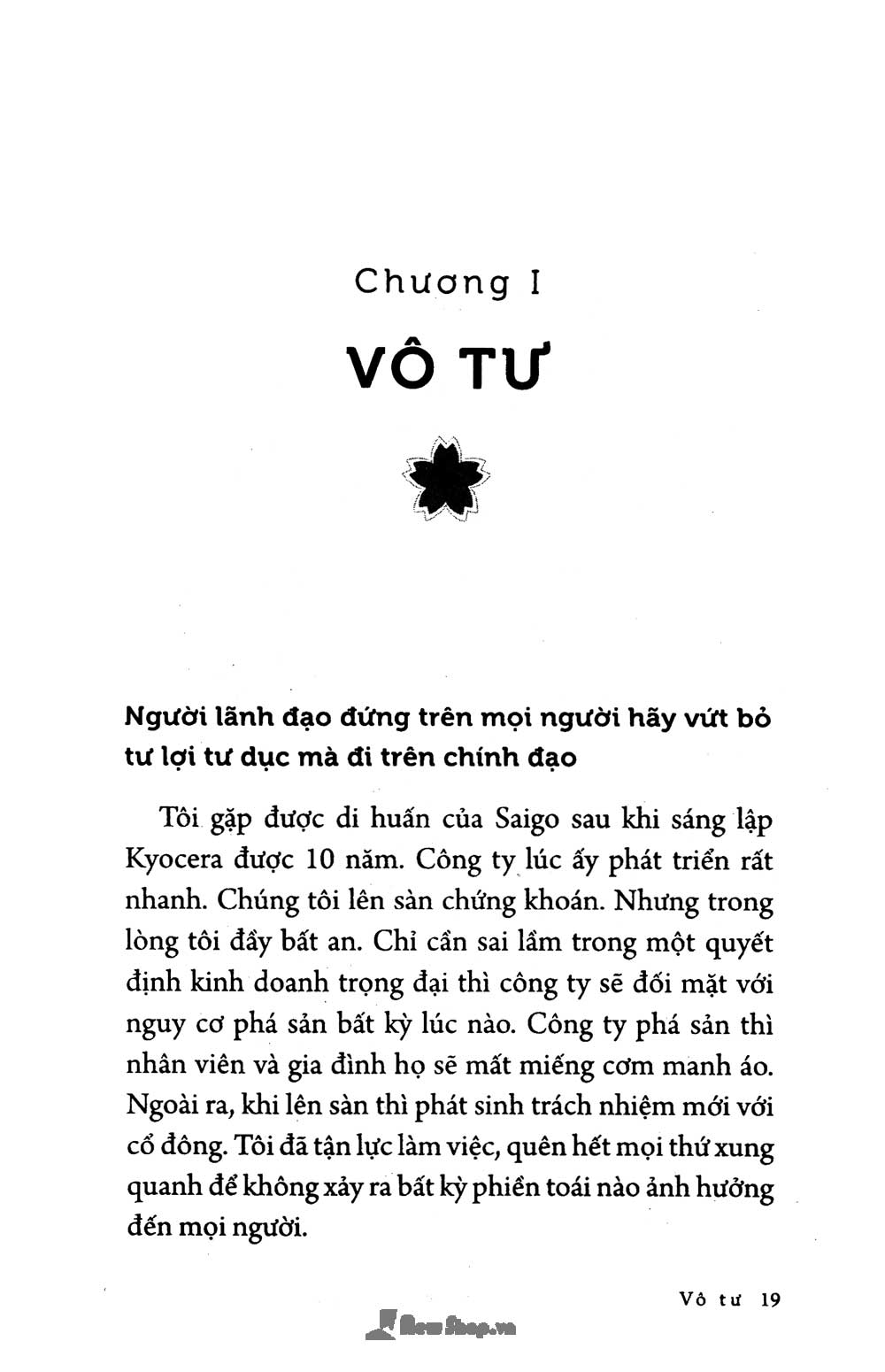Đây là một cuốn sách "2 trong 1", bạn đọc sẽ được tìm hiểu cùng một lúc, triết lý kinh doanh của một nhà kinh doanh tài ba hàng đầu Nhật Bản hiện đại - Inamori Kazuo, và tư tưởng làm người mẫu mực của một võ sĩ samurai chân chính bậc nhất nước Nhật thời Minh Trị Duy Tân - Saigo Takamori.