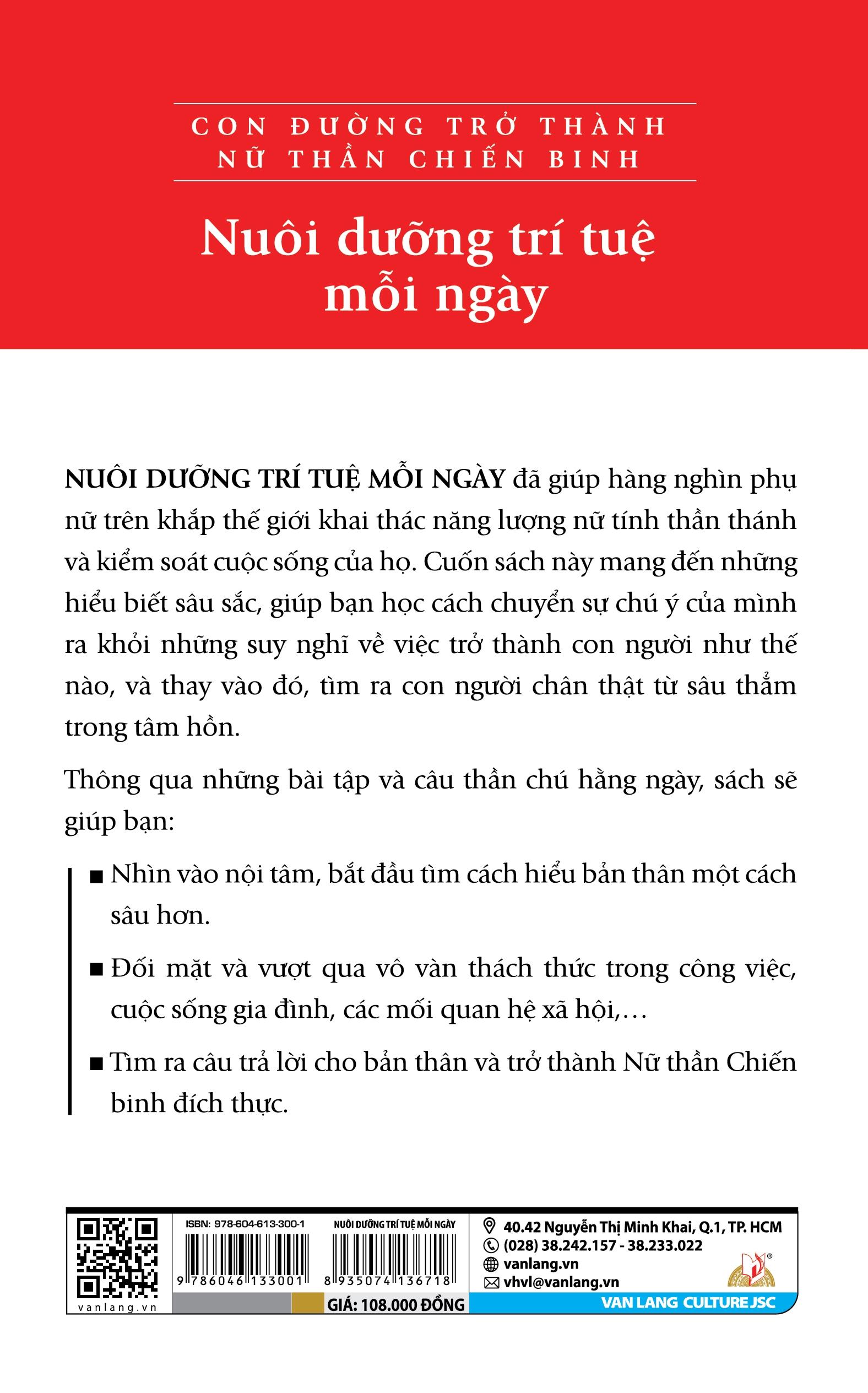 NUÔI DƯỠNG TRÍ TUỆ MỖI NGÀY đã giúp hàng nghìn phụ nữ trên khắp thế giới khai thác năng lượng nữ tính thần thánh và kiểm soát cuộc sống của họ. Cuốn sách này mang đến những hiểu biết sâu sắc, giúp bạn học cách chuyển sự chú ý của mình ra khỏi những suy nghĩ về việc trở thành con người như thế nào, và thay vào đó, tìm ra con người chân thật từ sâu thẳm trong tâm hồn.