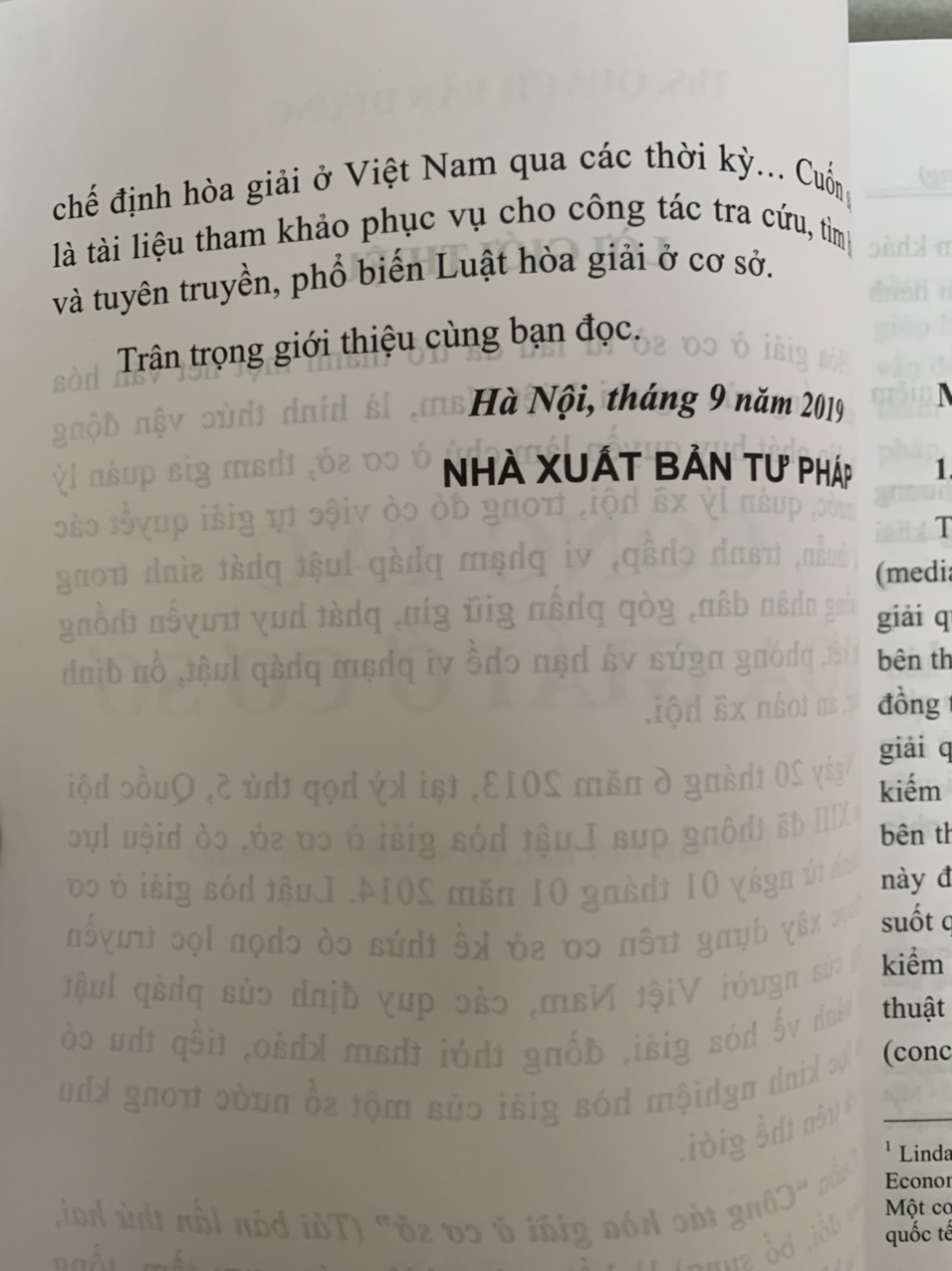 Cuốn “Công tác hòa giải ở cơ sở” (Tái bản lần thứ hai, có sửa đổi, bổ sung) là kết quả nghiên cứu, sưu tầm, tổng hợp và hệ thống một số khái niệm, mô hình hòa giải của các nước trên thế giới; quá trình hình thành và phát triển của chế định hòa giải ở Việt Nam qua các thời kì … Cuốn sách là tài liệu tham khảo phục vụ cho công tác tra cứu, tìm hiểu và tuyên truyền, phổ biến Luật hòa giải ở cơ sở.