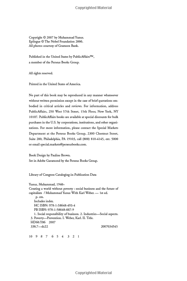 In the last two decades, free markets have swept the globe. But traditional capitalism has been unable to solve problems like inequality and poverty. In Muhammad Yunus' groundbreaking sequel to Banker to the Poor, he outlines the concept of social business -- business where the creative vision of the entrepreneur is applied to today's most serious problems: feeding the poor, housing the homeless, healing the sick, and protecting the planet. Creating a World Without Poverty reveals the next phase in a hopeful economic and social revolution that is already underway.