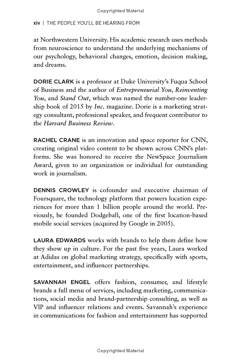 Featuring insider advice from Daymond John, Karlie Kloss, Tim Ferriss, Randi Zuckerberg, Dave Asprey, Dennis Crowley, Brandon Maxwell, Mauro Porcini, Joy-Ann Reid, Roy Wood Jr., and dozens more!