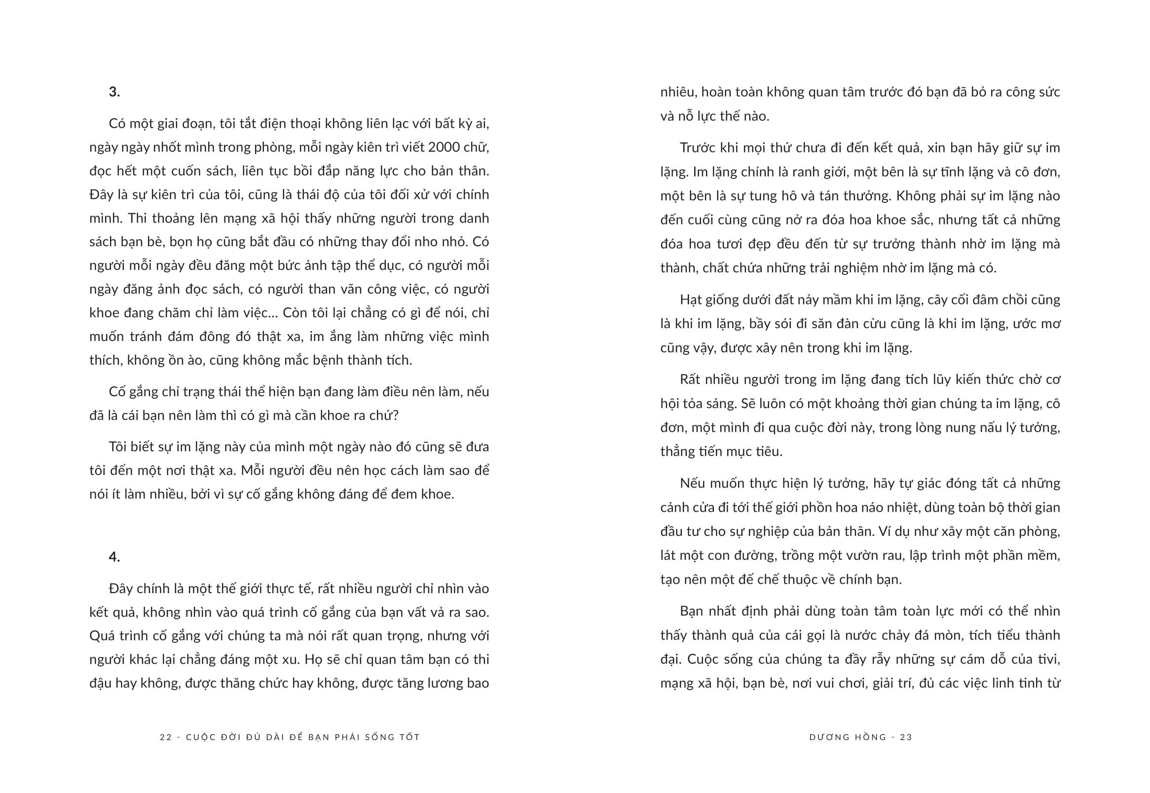 Cuộc đời đủ dài để bạn phải sống tốt là những câu chuyện về cuộc đời của những người trẻ được viết nên bởi khát vọng, ước mơ và vô vàn trắc trở. Cuộc sống này không chỉ có niềm vui tận hưởng thành công, mà còn có cả quá trình tận hưởng sự nỗ lực. Ngay cả khi những gì bạn mới chỉ nhìn thấy trước mắt là chông gai, hãy nhớ: Điều gọi là tuyệt vọng thật ra chỉ là thứ buộc bạn phải đi đúng đường mà thôi. Dòng đời ngày càng hối hả, chậm lại mới có thể đi xa hơn.