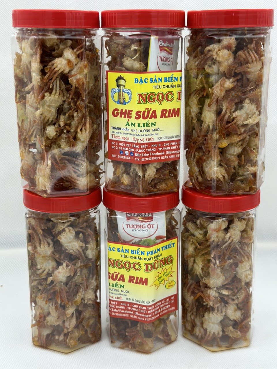- Ghẹ sữa rim đã chế biến ăn liền ngon ơi là ngon của shop Đặc Sản Biển Phan Thiết NGỌC DŨNG được bán trên các sàn thương mại điện tử; Chợ lớn Phan Thiết và các điểm dừng chân khi khách hàng đi du lịch Phan Thiết Mũi Né mua để ăn vật và mua làm quà biếu cho người thân, bạn bè, đồng nghiệ