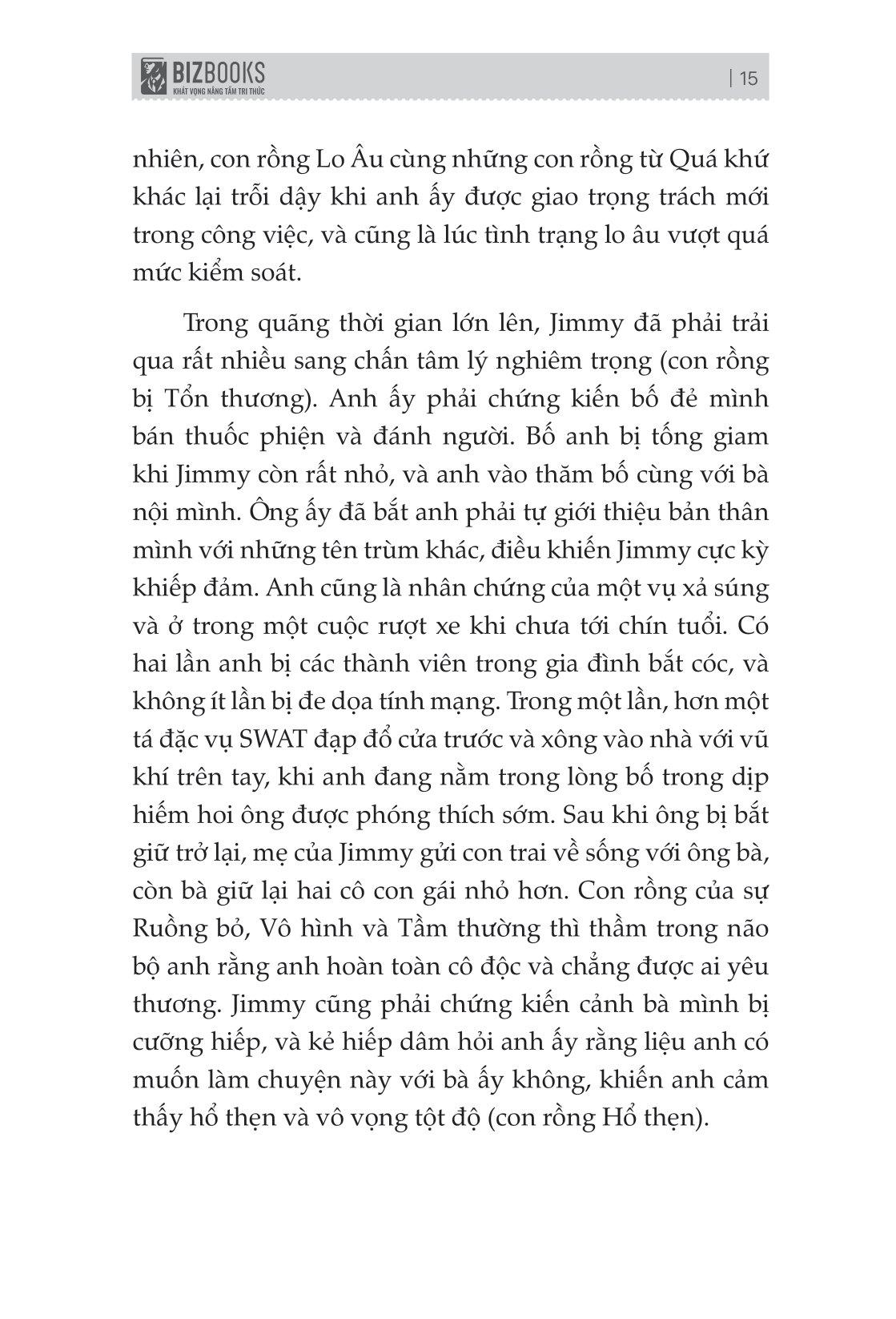 Cuốn sách đã phân tích tất cả những lí do, cả rõ ràng lẫn tiềm ẩn mà những con rồng và ý nghĩ tiêu cực không ngừng thì thầm trong não bộ của bạn, làm bạn cảm thấy buồn bực, lo âu, u uất, tức giận hay mất kiểm soát. Với những phương pháp nhằm chinh phục các con rồng, bạn sẽ lấy lại quyền kiểm soát não bộ của m.ình và lựa chọn những gì m.ình muốn nghe. Bạn sẽ không phải đương đầu trước những suy nghĩ tiêu cực hay để thói quen xấu hủy hoại sức khỏe cùng các mối quan hệ của m.ình khi trải qua căng thẳng cực độ, sang chấn hay tiếc thương. Bạn sẽ nhận ra đâu là sự thật, xây dựng được sự tự tin, đưa tâm trí m.ình vào khuôn khổ, cảm thấy hạnh phúc hơn, bình thản hơn và nắm trong tay vận mệnh cùa m.ình.