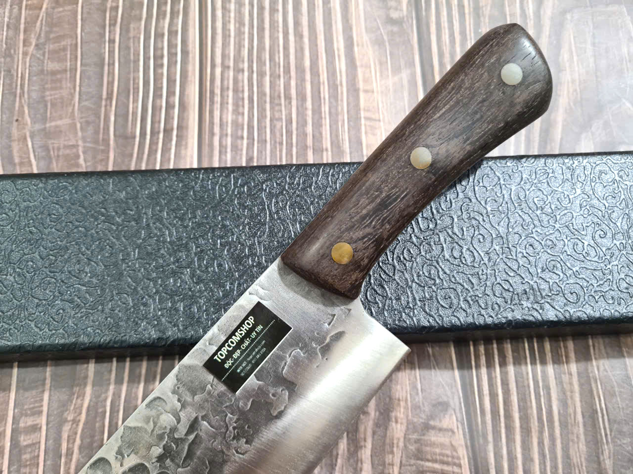 MÔ TẢ SẢN PHẨM **** DAO BẾP, DAO THÁI, DAO LỌC MÃ TR6 : CHÚ Ý : SẢN PHẨM KHÔNG HAN RỈ, XỈN MÀU THEO THỜI GIAN , CHỊU ĐƯỢC MÔI TRƯỜNG KHẮC NGHIỆT, ẨM ƯỚỮ SẮC CỰC BỀN, RẤT ÝT PHẢI MÀI TỔNG DÀI : 30cm, LƯỠI: 19.5cm,RỘNG : 6.5cm, dày: 2.8mm, CHẤT liệu lưỡi: 5Cr15MOV (thép 5 crom 15 molypden vanadi) Chất liệu CÁN: gỗ Cánh gà, NẶNG : 3.5 lạng