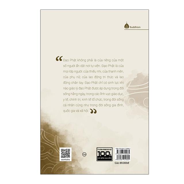 [ThaiHaBooks] Qua cuốn sách này, Thiền sư Thích Nhất Hạnh và Hòa thượng Thích Huyền Quang đáng kính đã hết sức nhấn mạnh tầm quan trọng của việc ứng dụng các giáo lý nhà Phật vào thế giới đương đại của chúng ta. Bằng niềm tin vững chắc, cuốn sách cho thấy tính khả dĩ vượt thời gian của Phật giáo trong việc điều hướng xã hội đương đại cùng tất cả những vấn đề phức tạp của nó. Từ giáo dục, y tế, chính trị, kinh tế, cơ cấu xã hội đến đời sống cá nhân và các vấn đề gia đình, hai tác giả nhiệt tình ủng hộ tích hợp các giáo lý sâu sắc vào Phật pháp.