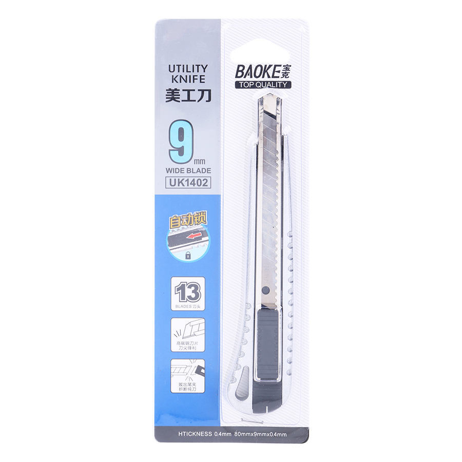 Dao Rọc Giấy Baoke UK1402 (9mm) với lưỡi dao rộng 9mm, độ rộng vừa phải cho giới học sinh và văn phòng.