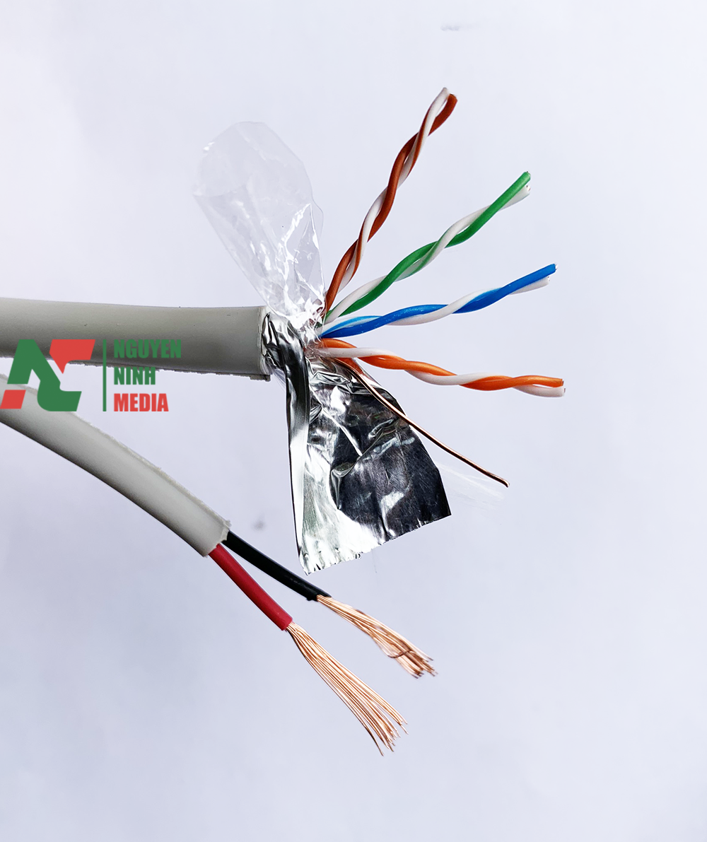 • Cáp mạng kèm nguồn Cat5e FTP + 2C là cáp mạng có kèm thêm 2 dây nguồn dẫn điện; loại dây này được dùng rất phổ biến trong các hệ thống camera quan sát, camera IP,…