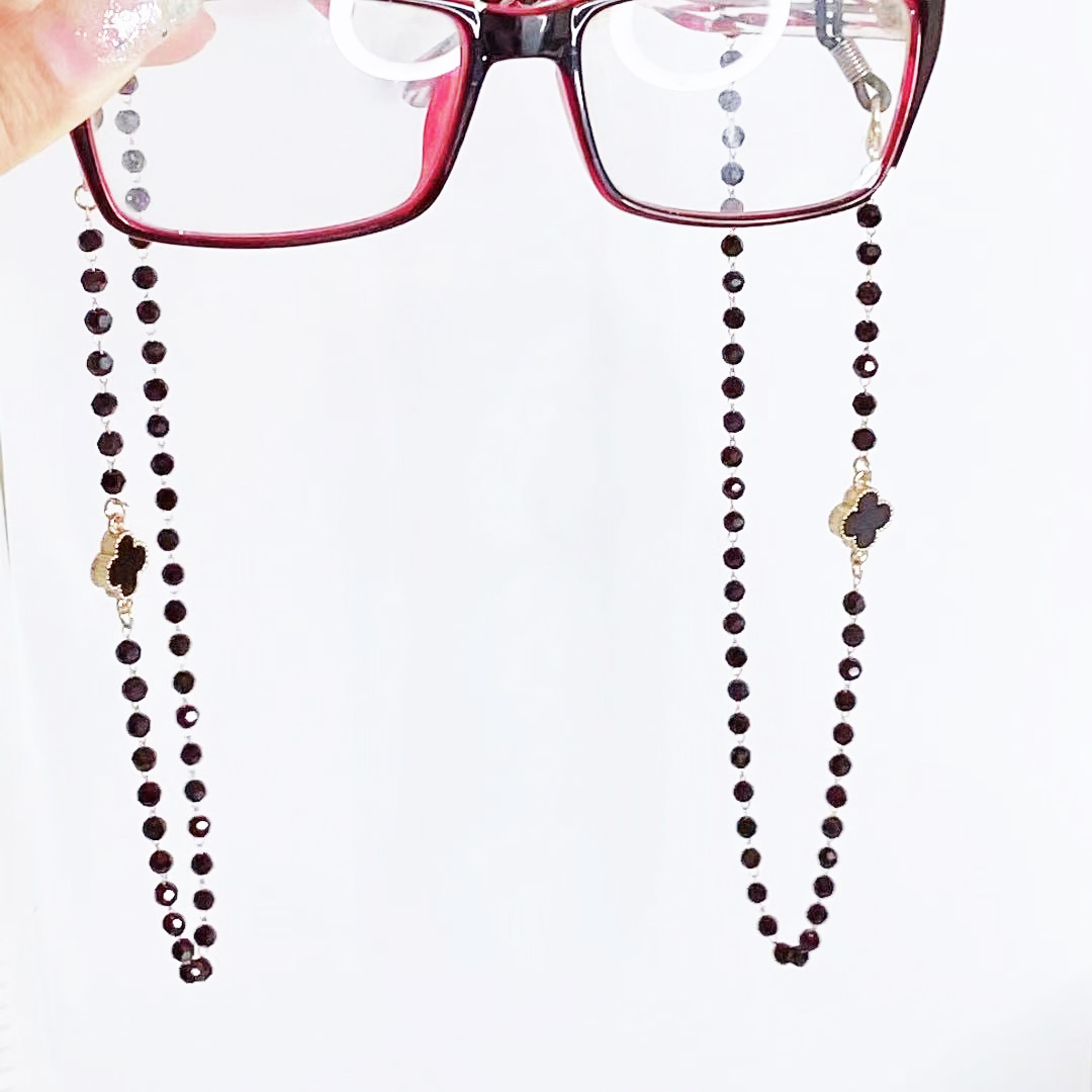 ✨Dây đeo mắt kính mix hạt cườm đen và charm cỏ 4 lá đen may mắn
