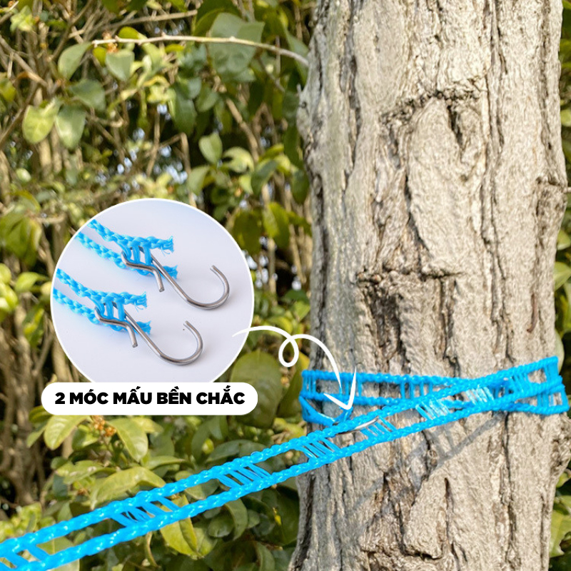 Bộ sản phẩm bao gồm dây phơi quần áo thông minh, mỗi dây dài 5m, có thiết kế móc treo thuận tiện và các ô nhỏ cố định móc treo để quần áo không bị