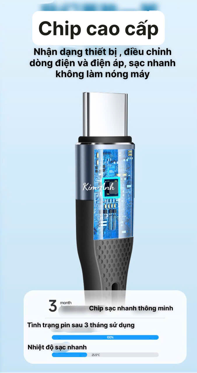 Nâng cấp chip thông minh - sạc nhanh không nóng máy, có chức năng nhận dạng thiết bị điều chỉnh dòng điện và điện áp, sạc nhanh không làm nóng máy