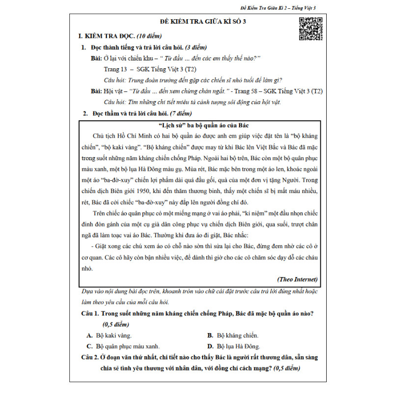 Đề Kiểm Tra Tiếng Việt 3 - Tập 2 là bộ gồm 5 đề giữa kì và 15 đề cuối kì theo chương trình sách giáo khoa hiện hành lớp 3.