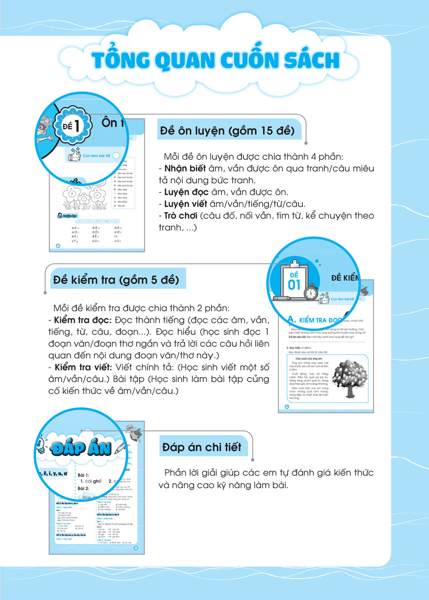 Đề Ôn Luyện Và Tự Kiểm Tra Tiếng Việt Lớp 1 - Tập 1 (Biên Soạn Theo Chương Trình GDPT Mới) là một "trợ thủ" đắc lực giúp các em học sinh có thể tự ôn luyện sau mỗi giai đoạn học tập: ôn tập ngắn sau 2-3 tuần học, ôn tập giữa học kỳ và ôn tập cuối học kỳ - cuối năm học.