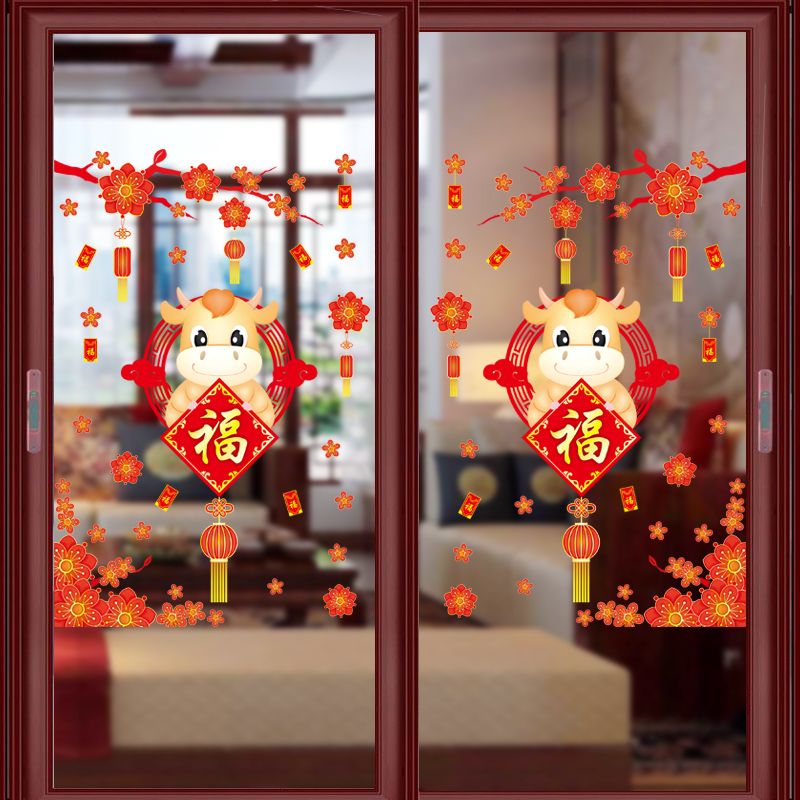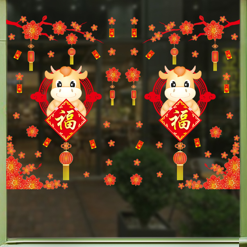 ✨Decal dán tường decal trang trí tết Mẫu Lồng Đèn Đỏ và con trâu AMJ921