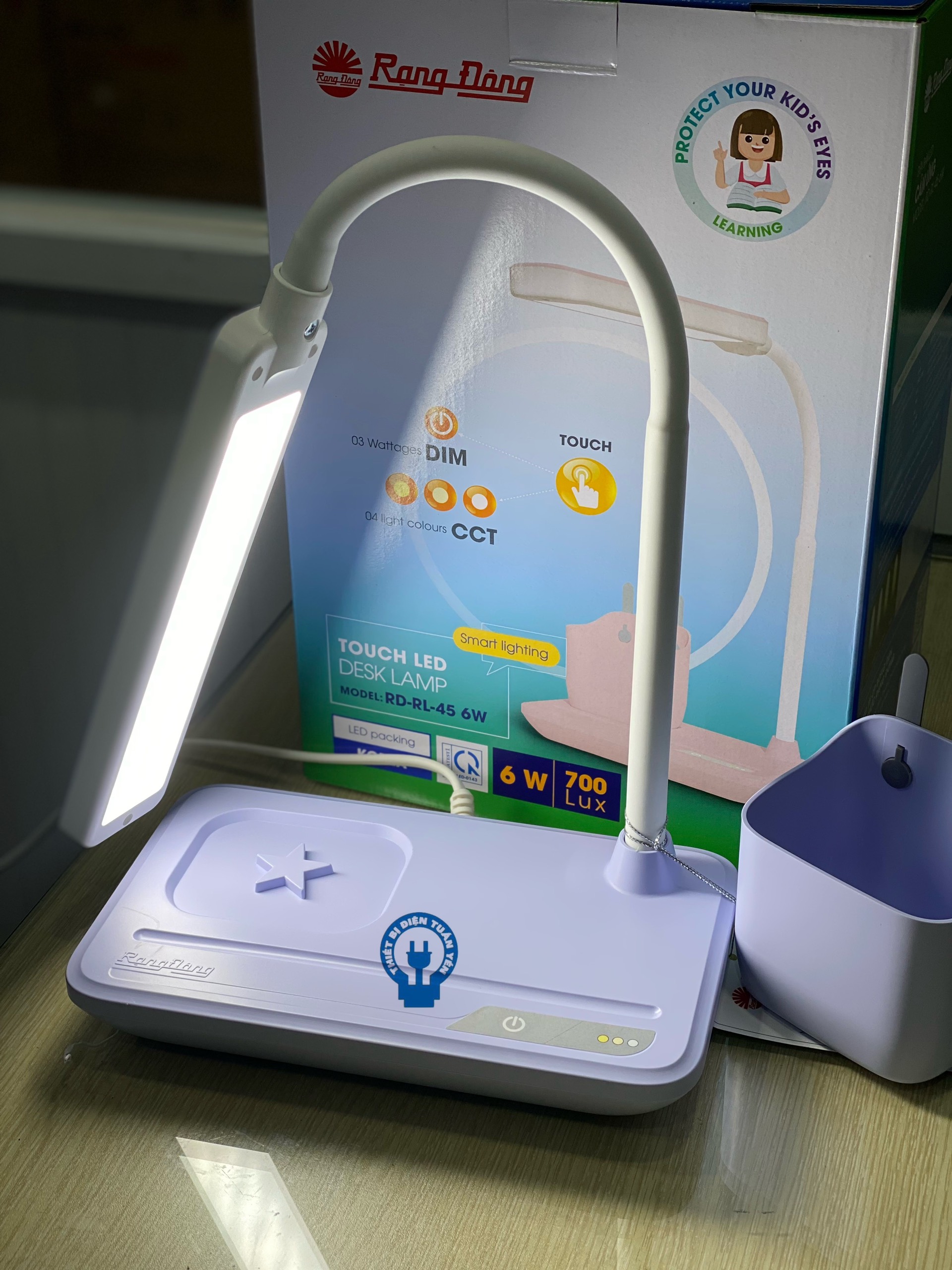 Đèn bàn RD-RL-45 6W sử dụng chip LED Hàn Quốc, chất lượng ánh sáng cao (CRI≥80), phản ánh trung thực màu sắc của trang sách, độ rọi đạt chuẩn >700 lux và không có hiện tượng nhấp nháy giúp bảo vệ mắt và tăng sự tập trung cho trẻ. Cần đèn cao linh hoạt điều chỉnh góc chiếu, trường sáng, tránh hiện tượng khuất ánh sáng khi trẻ viết bài.