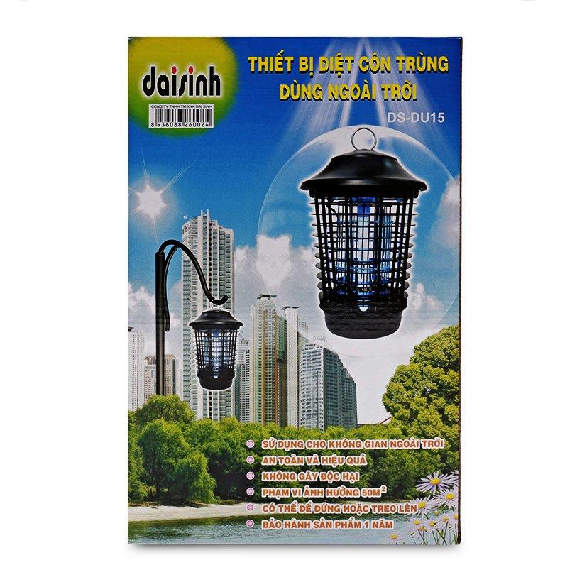 Sử dụng bóng đèn chuyên dụng phát tia UVA thu hút côn trùng và bị tiêu diệt bằng lưới điện. An toàn, tiện lợi, không gây hại cho sức khỏe cho người tiêu dùng và trẻ nhỏ. Sản phẩm đèn diệt côn trùng DS-DU15 được Trung tâm III cấp Giấy chứng nhận an toàn chất lượng Đây là một mẫu đèn diệt côn trùng 15W, thiết kế đặc biệt với bóng đèn hình chữ U Thích hợp sử dụng trong nhà và ngoài trời, trời mưa vẫn sử dụng bình thường.