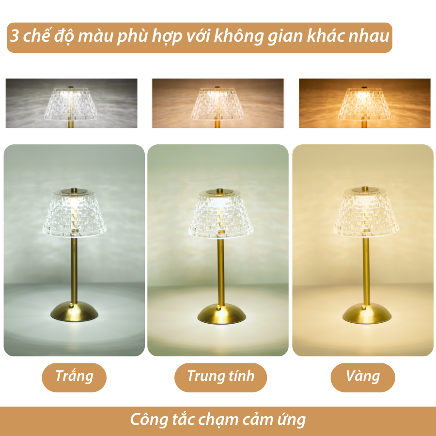 Đèn Bàn Led Quầy Bar, Quán Bar, Nhà Hàng| Cảm Ứng Tăng Giảm Độ Sáng, Pin Sạc Tích Điện| HUTA RESDIA