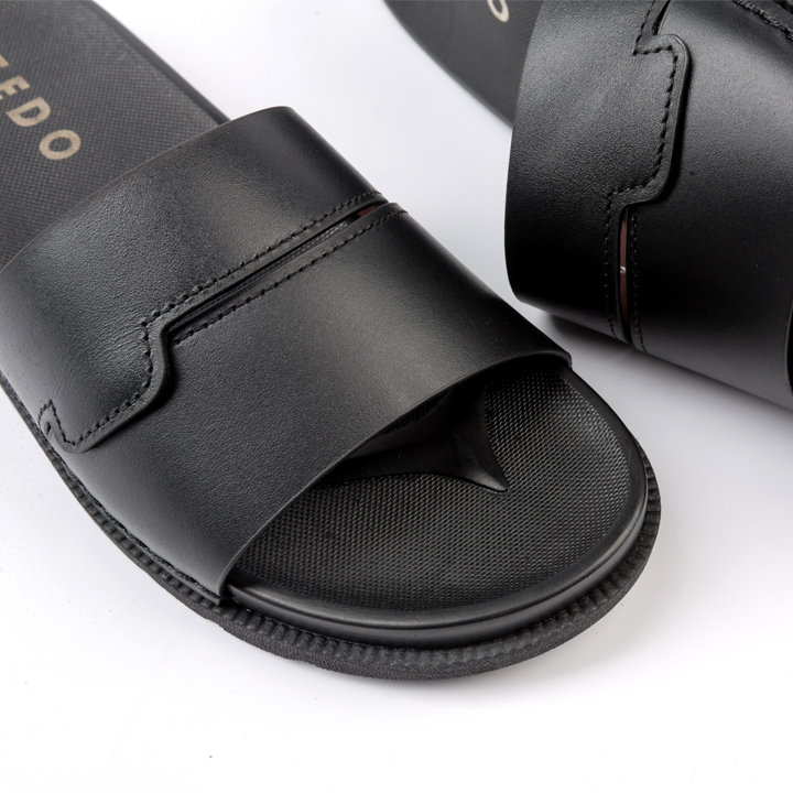Dép Da Nam - Lịch Lãm & Thoải Mái Mỗi Ngày - Chất liệu cao cấp: Sử dụng da tổng hợp chất lượng, mềm mại, bền bỉ theo thời gian, mang lại cảm giác êm ái và thoáng khí cho bàn chân. - Thiết kế sang trọng: Tông màu đen lịch lãm, kết hợp với đường chỉ may tinh tế và logo kim loại nổi bật – tôn lên vẻ nam tính, trưởng thành. - Đế chống trượt: Đế EVA siêu nhẹ, độ đàn hồi tốt, kết hợp vân đế tăng độ ma sát – an toàn khi di chuyển trên nhiều bề mặt. - Form ôm chân: Thiết kế bản quai ngang rộng, ôm gọn bàn chân nhưng không gây bí bách, dễ xỏ vào – thích hợp cho người trung niên và người lớn tuổi. - Ứng dụng đa năng: Phù hợp sử dụng trong nhà, đi dạo phố, đến văn phòng hoặc các dịp gặp gỡ thân mật. Lựa chọn tuyệt vời cho quý ông yêu thích sự thoải mái, đơn giản nhưng vẫn giữ được nét tinh tế trong từng bước chân.