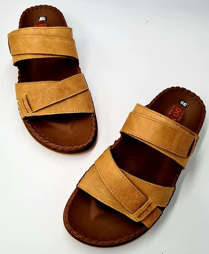 DÉP NAM QUAI NGANG DA BÒ 100%DONAVY, KIỂU 02 QUAI KÉP ĐẲNG CẤP, MAY HANDMADE 02 LẦN QUAI VÀ ĐẾ CHẮC CHẮN