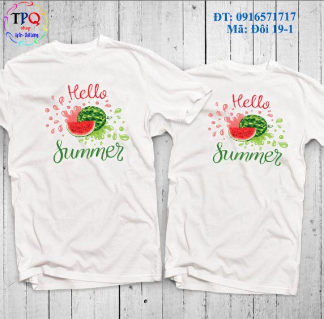 Đồ đôi đi biển mẫu mới đẹp sang quần đa sắc áo in họa tiết dưa hấu hello summer ( giá 1 bộ gồm 1 quần+1 áo)
