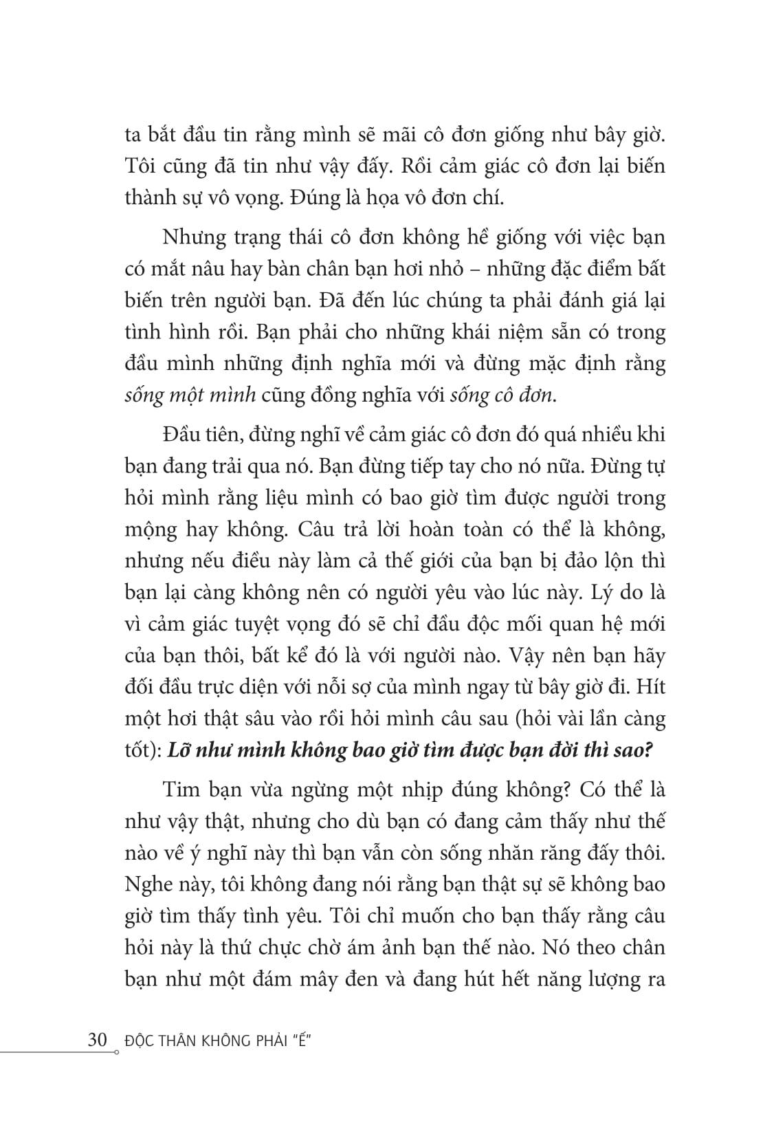 Cuốn sách “Độc Thân Không Phải Ế” dành cho bất kỳ ai đang cảm thấy vô vọng, cô đơn hay nản chí và không biết phải làm gì để cải thiện tình hình.