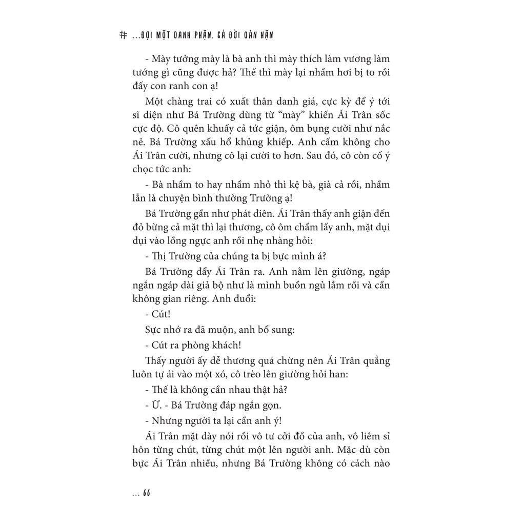 Ngọt ngào vừa đủ, đắng cay cũng trọn, “Đợi một danh phận, cả đời oán hận” của tác giả Lan Rùa là câu chuyện về cô gái cố chấp như thế. Cố chấp yêu, cố chấp tổn thương trong mối quan hệ rắc rối, trong thứ tình cảm dẫu biết sai trái nhưng không thể buông tay. Nhưng có lẽ cố chấp đến đâu thì một ngày nào đó cũng nên vì bản thân mà dừng lại, kết thúc chuỗi ngày trong vô vọng ấy.