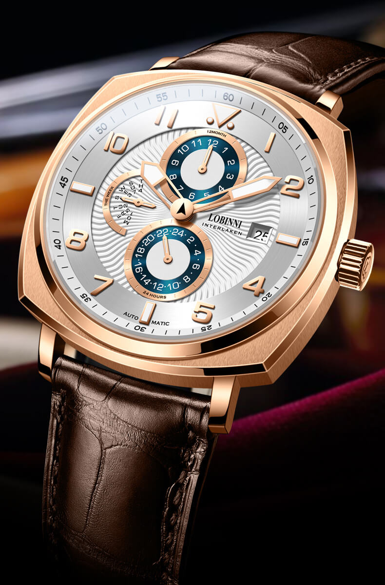 Đồng hồ nam chính hãng LOBINNI Thụy Sỹ Thiết kế sang trọng, đẳng cấp cho quý ông Thời gian trữ cót lâu lên đến 40h Chống nước 5ATM, Kính sapphire Toàn bộ máy được làm