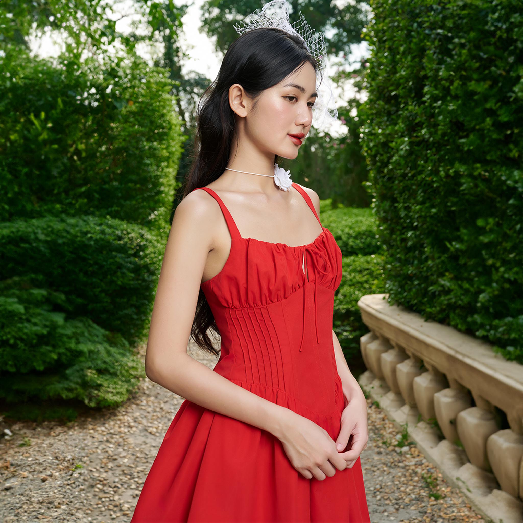 ✨DOTTIE - Đầm coset tùng xòe - Đỏ - D0573