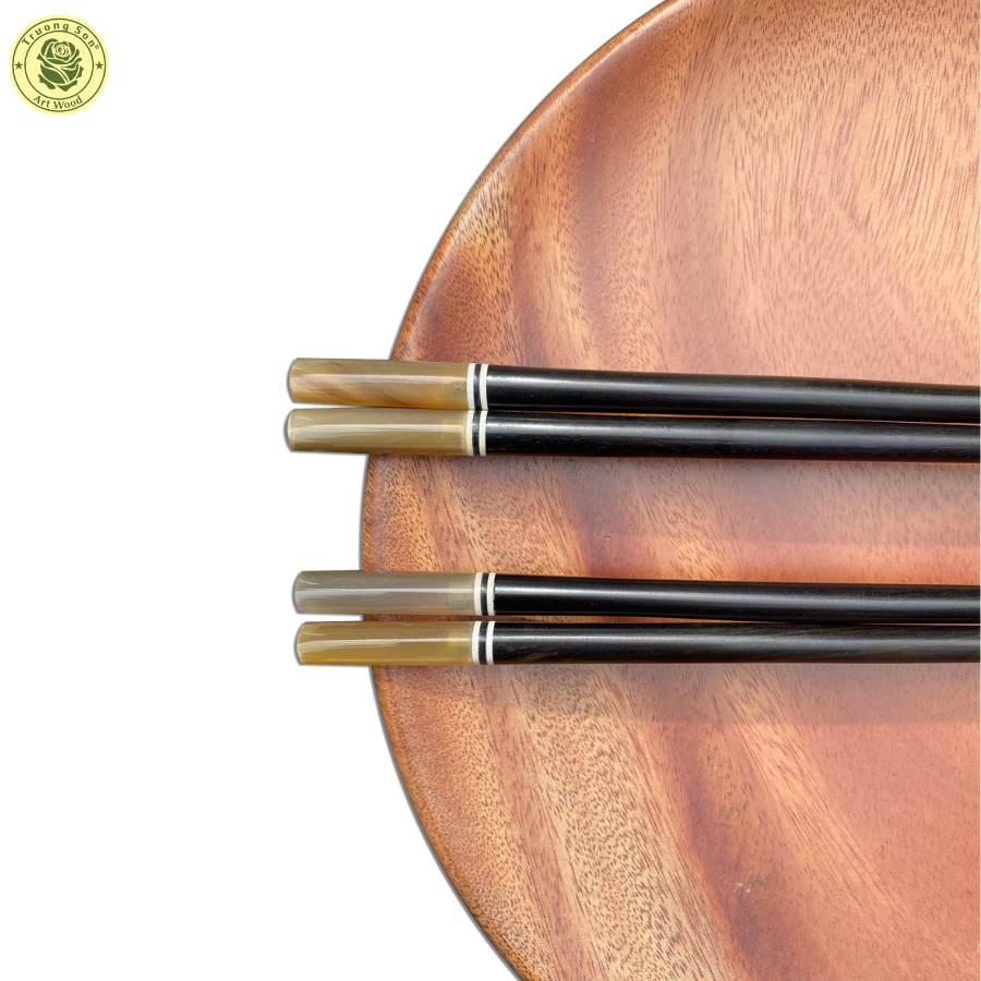 THÔNG TIN SẢN PHẨM Tên sản phẩm: Đũa Gỗ Cẩm Lai Ghép Sừng - thương hiệu Trường Sơn Kích thước đũa: 24 +/- 0.5 Cm Số lượng: 05 Đôi/ Hộp Hoặc 10 Đôi / Hộp