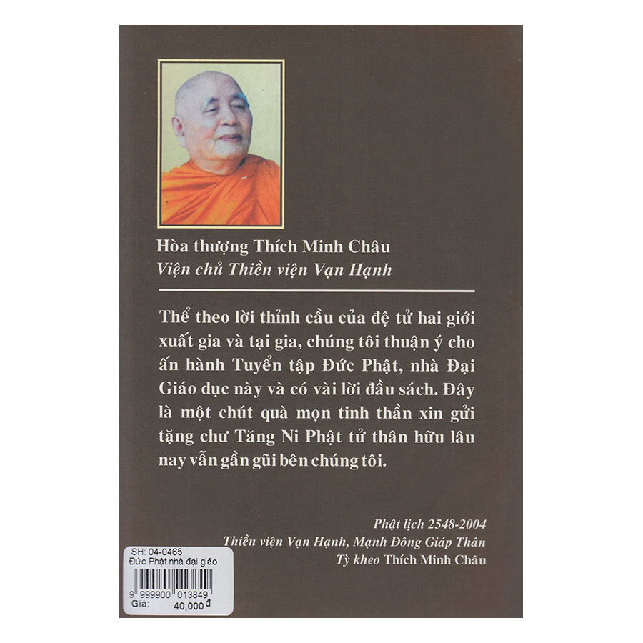 Bạn đọc đang có trên tay một cuốn sách rất thú vị Người Thầy Của Tỉnh Thức & Thương Yêu. Đây là tập hợp một số bài báo trong hàng vạn bài viết về Thiền sư