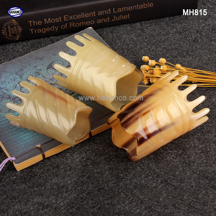 Dụng cụ mát xa đầu, ngón tay, làm từ thân ống sừng, được các nghệ nhân đục khắc họa tiết đẹp. Mô tả sản phẩm:
