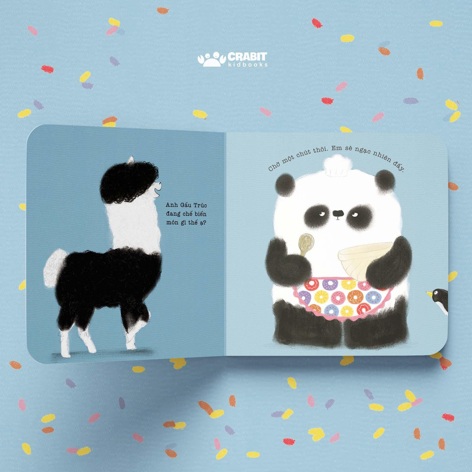 Bạn thú nào cũng tò mò, nhưng chẳng ai đủ kiên nhẫn để đợi anh Gấu Trúc nấu xong. Steve Antony gửi tới các bạn nhỏ một cuốn sách nhẹ nhàng nhưng không kém phần dễ thương về ý nghĩa và giá trị của đức tính kiên nhẫn! Nếu các em sẵn lòng đợi một tí xíu thôi, bất ngờ khổng lồ sẽ xuất hiện đó!