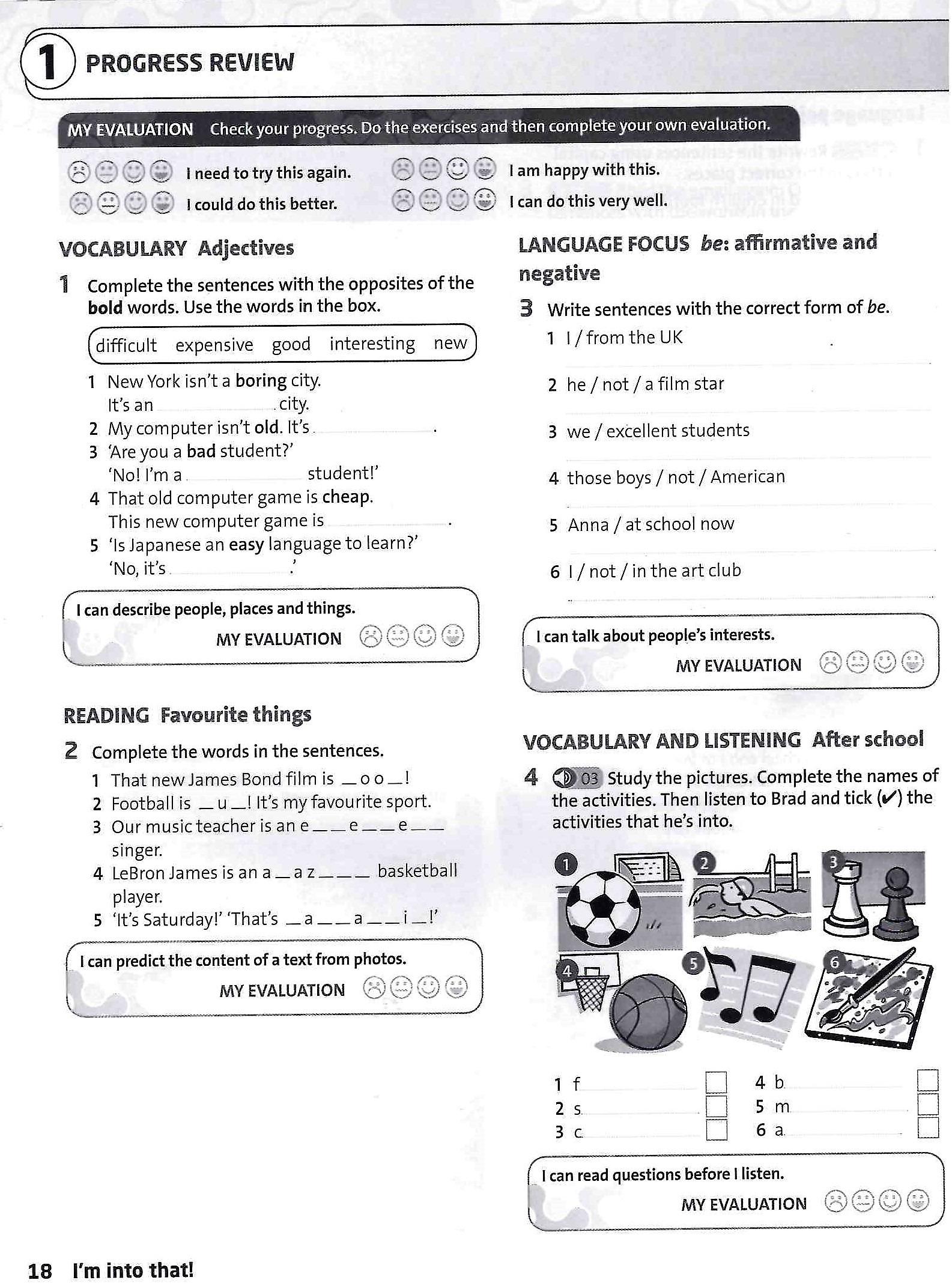 There is a two-page Progress review at the end of each unit. These exercises check understanding of all the vocabulary, grammar and skills presented in the unit. They also provide a record of what has been learned in the unit.
