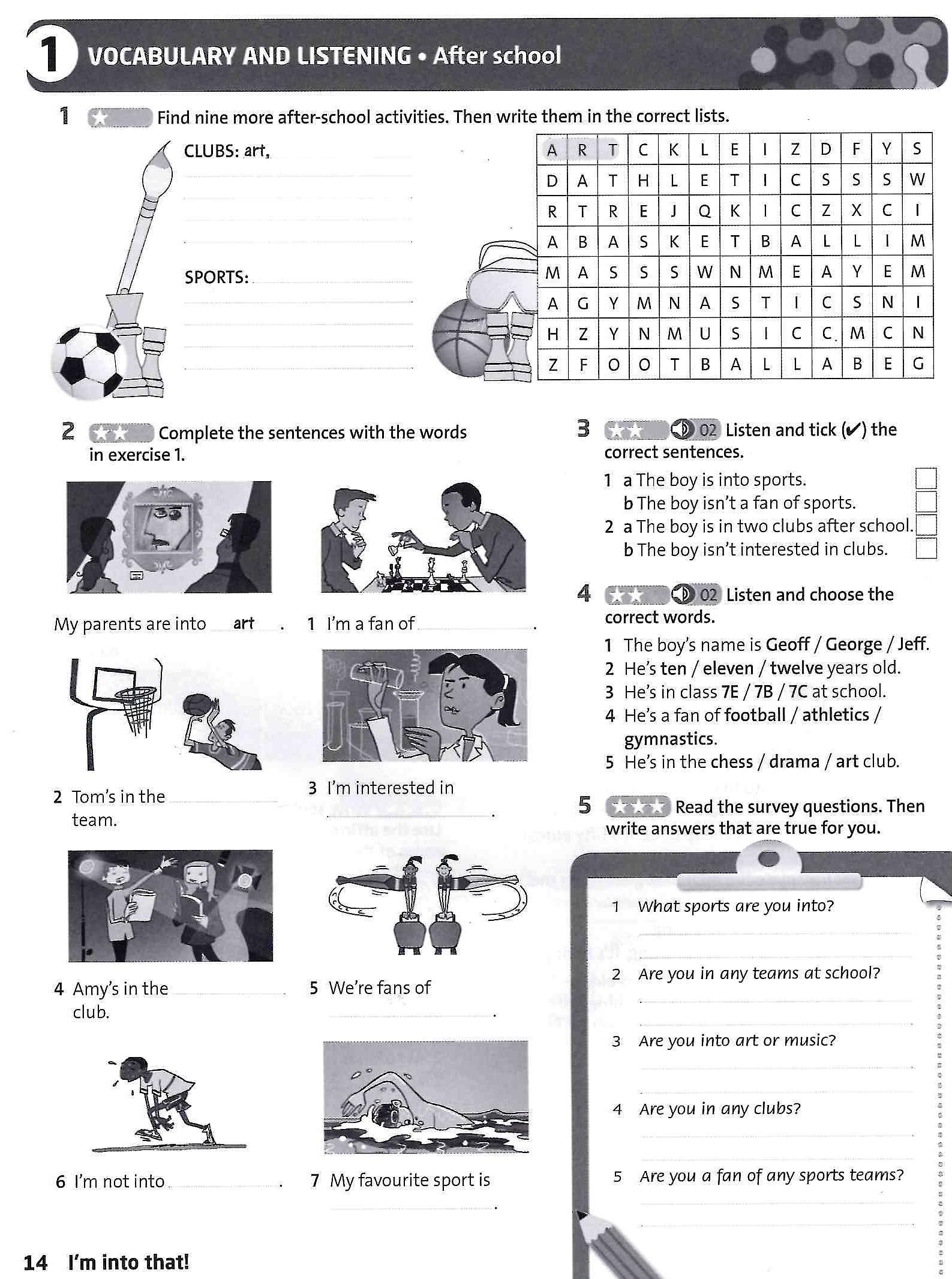 There are three levels of practice activities: one-star activities provide basic revision and language manipulation; two-star activities involve more productive exercises; and three-star activities are more open and offer more challenge.