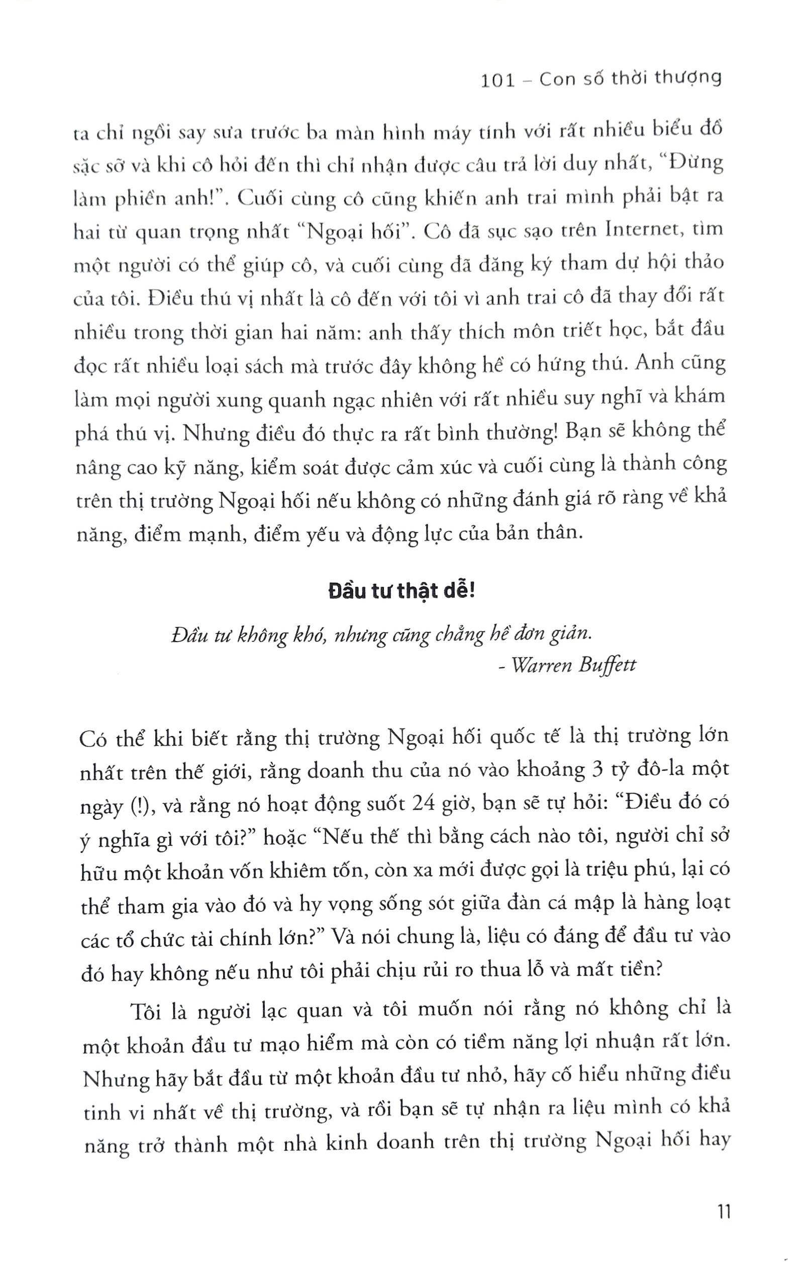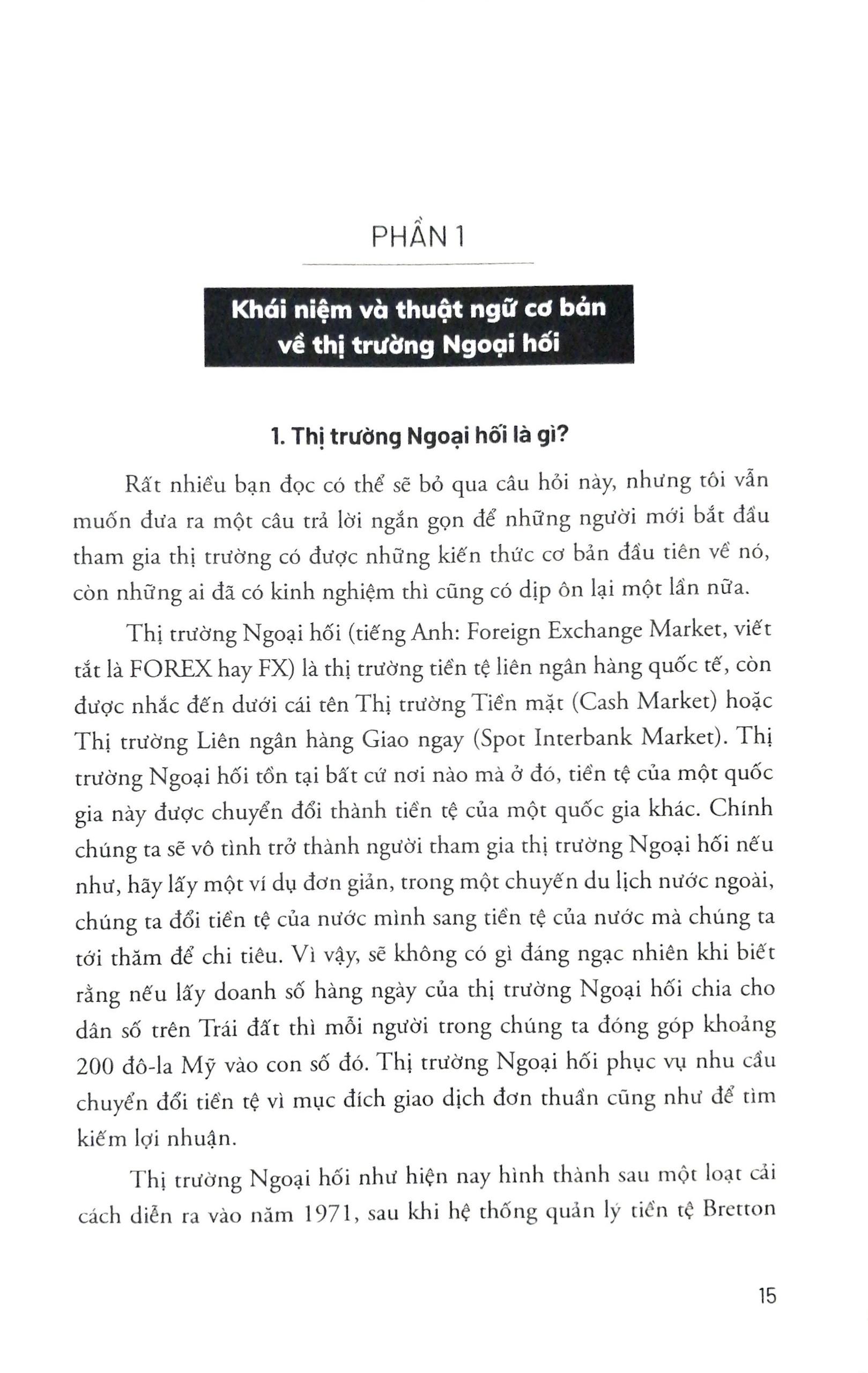 Vậy thì, bạn đọc thân mến, tôi rất lấy làm vinh dự được giới thiệu với bạn về thị trường Ngoại hối theo cách mà tôi biết, sau mười năm kinh nghiệm với rất nhiều thử nghiệm và sai lầm, khám phá và hiểu biết.”