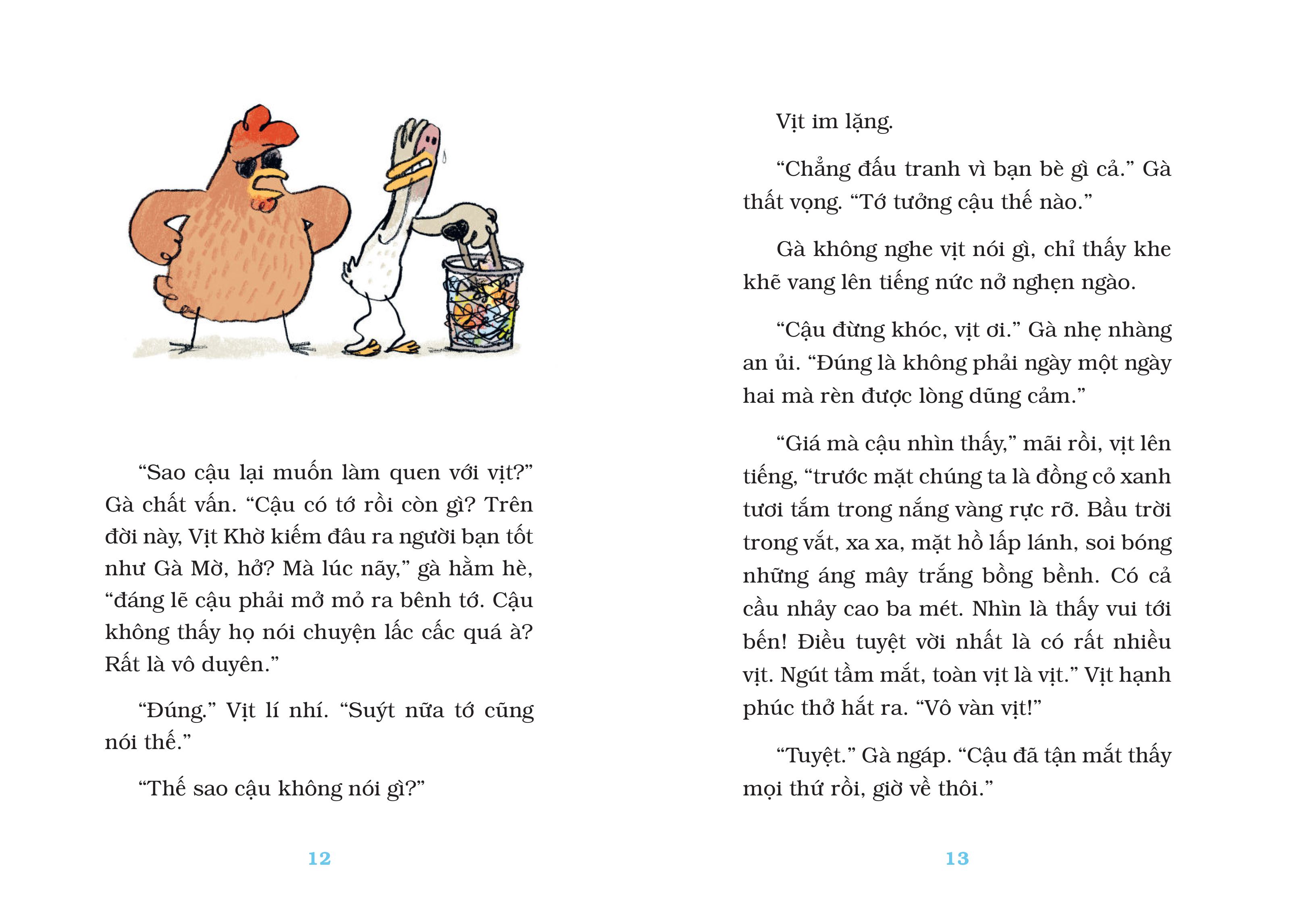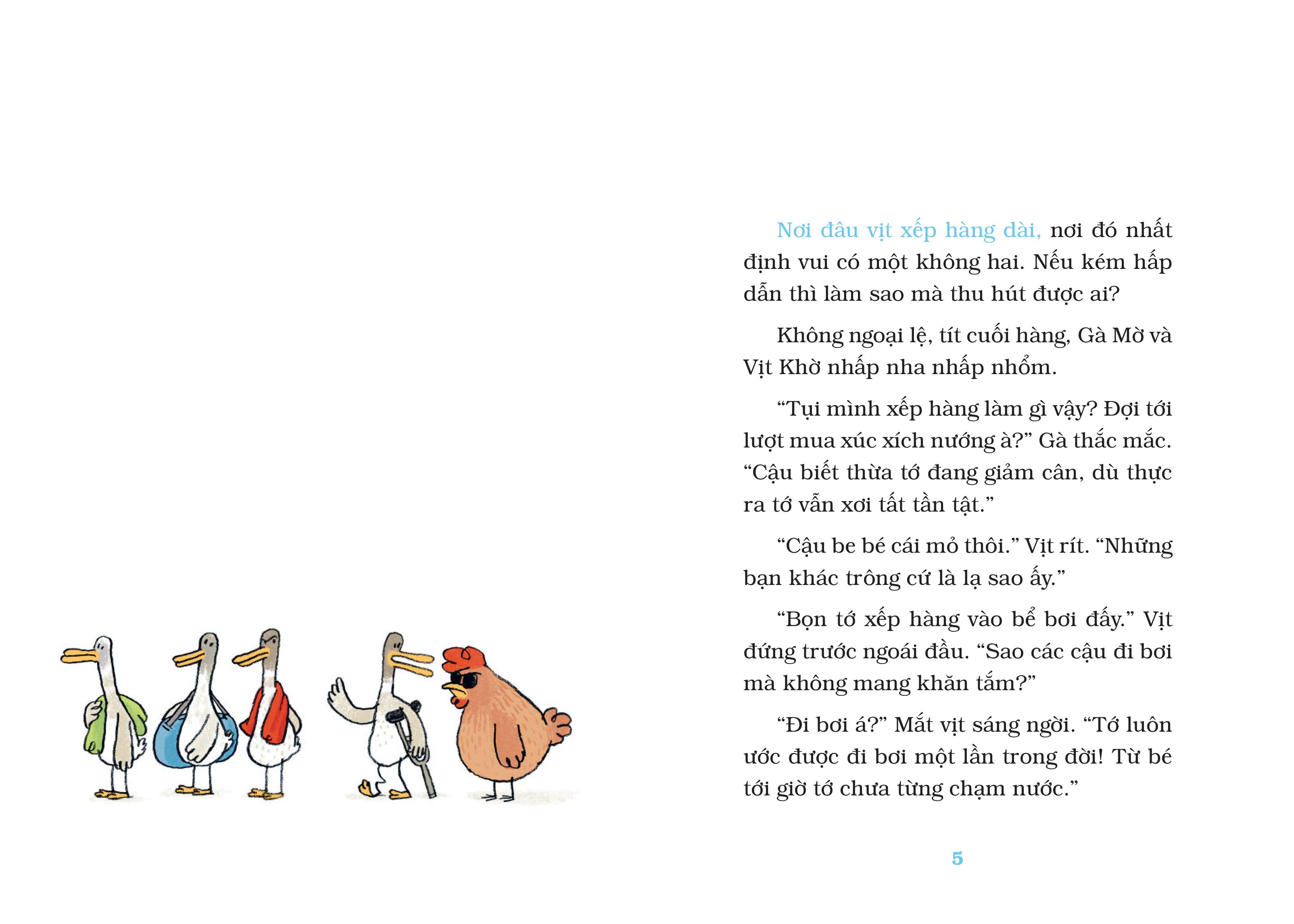 Gà Mờ và Vịt Khờ là đôi bạn vàng trong làng cự cãi", cả hai cùng dấn thân vào những chuyến phiêu lưu kì quặc nhưng đầy cảm xúc, nào rời khỏi mảnh sân nhà để tìm “vùng đất mộng mơ”, rồi lại cùng chen vào bể bơi công cộng để... bị đuổi. Mỗi hành trình là một màn tung hứng vừa hài hước vừa sâu sắc, về tình bạn, sự khác biệt và cả những giận dỗi rất đáng yêu.