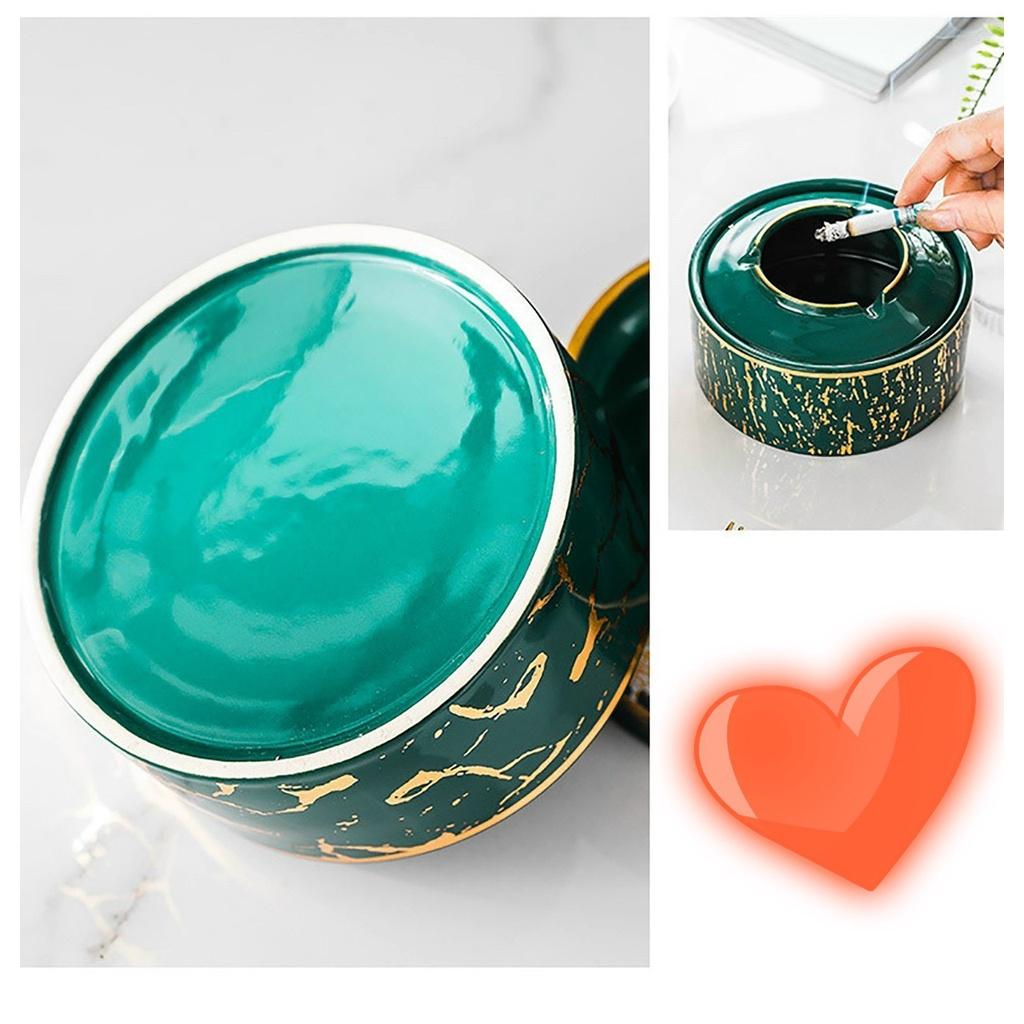 ✨GẠT TÀN BẰNG SỨ TRÒN NẮP GÁC RỜI MÀU XANH CỔ VỊT RẠN VÀNG