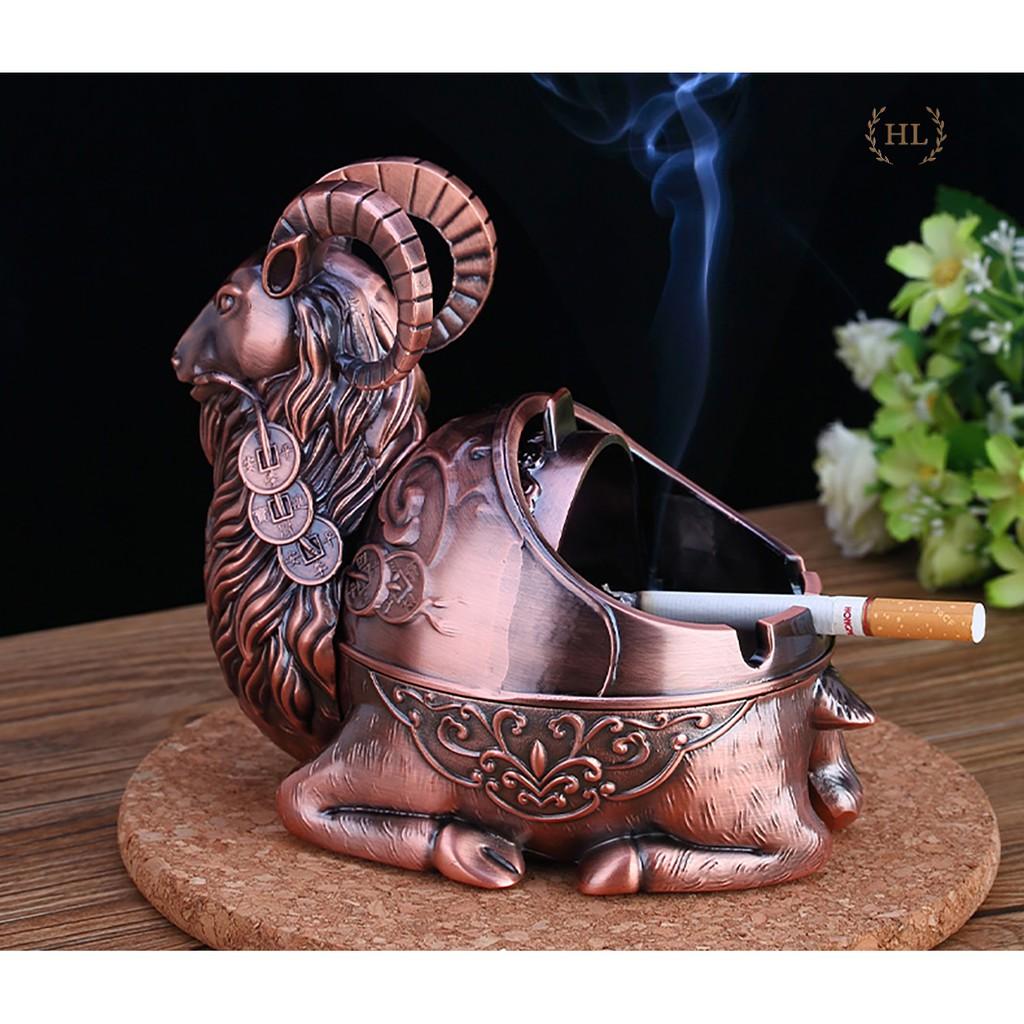 Gạt Tàn Thuốc bằng kim loại HÌNH DÊ Hoạ tiết chú DÊ ngộ nghĩnh Kích thước cao 15x9.13,5 cm Màu : Đồng đỏ
