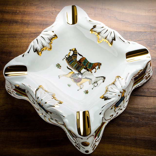 ✨Gạt Tàn Sứ Lubinski AS160 Cao Cấp Họa Tiết Hoa Văn Thổ Cẩm Họa Tiết Hình Con Ngựa Sang Trọng