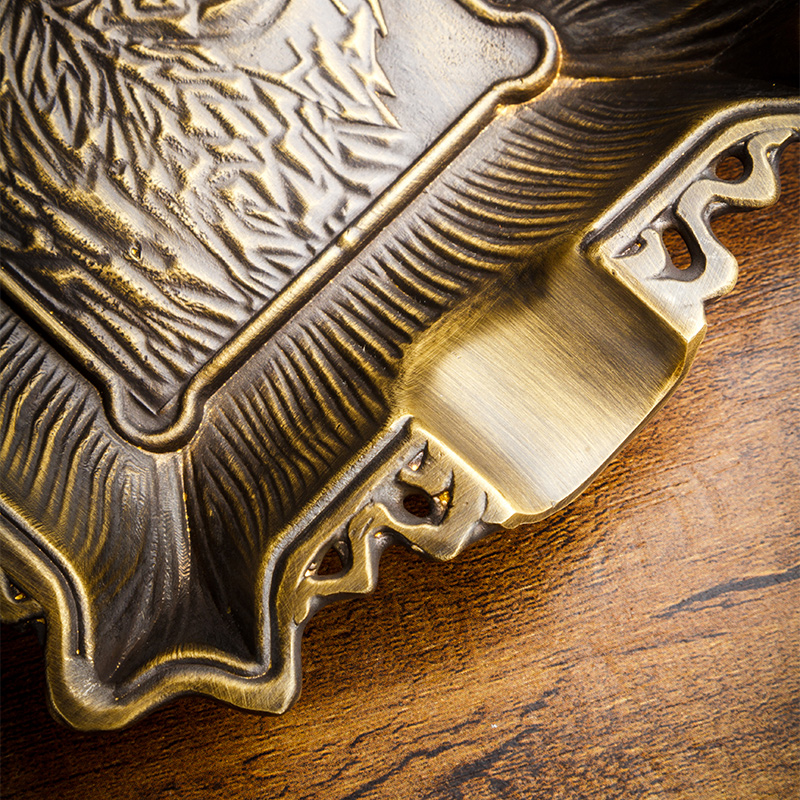 Thiết kê tinh xảo, sang trọng, hoa văn đẹp, mầu đồng cổ điển. + Chất liệu bằng Hợp kim, chắc chắn, bền mầu. + Gạt đóng, mở nắp để sử dụng, không bị văng tàn